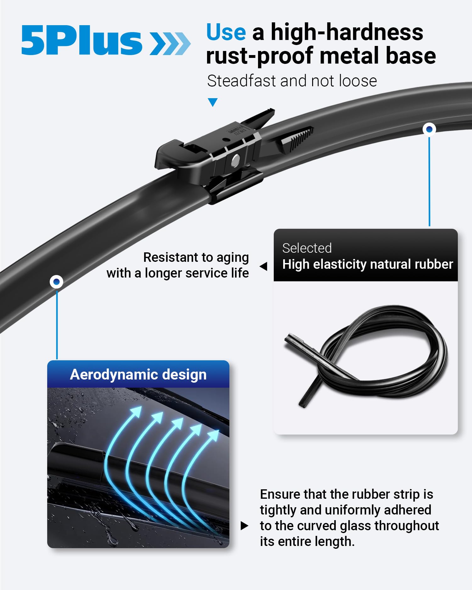 【Original Fit Replacement】5 Plus Wiper Blades Replacement For Ford Escape 2020 2021 2022 2023 Windshield Wiper Blades(Set of 3)