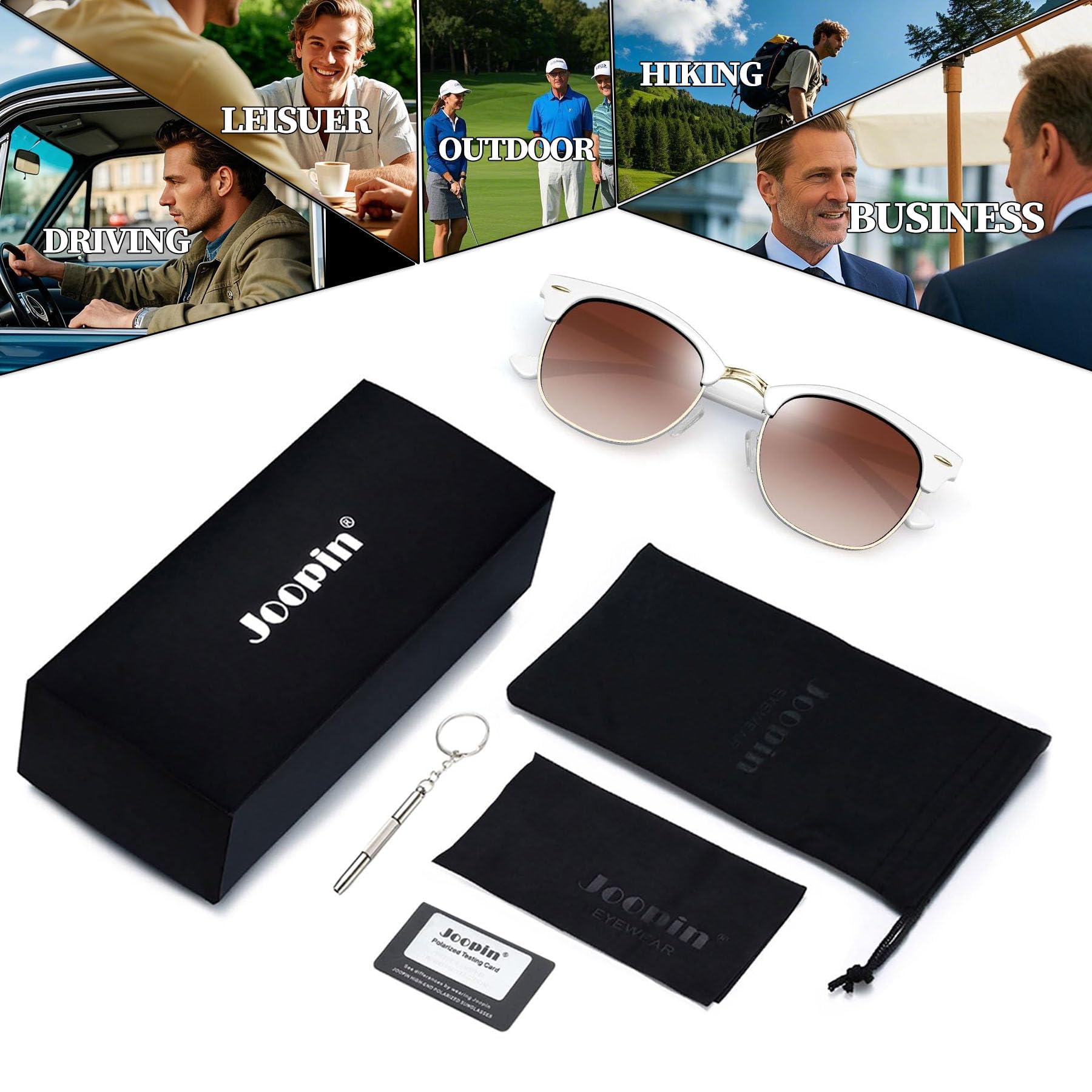 Exquisite Box Packaging: White and brown sunglasses x 1 /soft box x 1 / exquisite bag x 1 /lens cloth x 1/ practical screwdriver x 1/polarized testing card x 1. Step out in style with these stylish sunglasses. Packaged already, making it a wonderful yet practical festival idea for friends and family! Joopin focuses on fashion womens sunglasses and mens sunglasses. Click and get your quality and cheap browline sunglasses now
