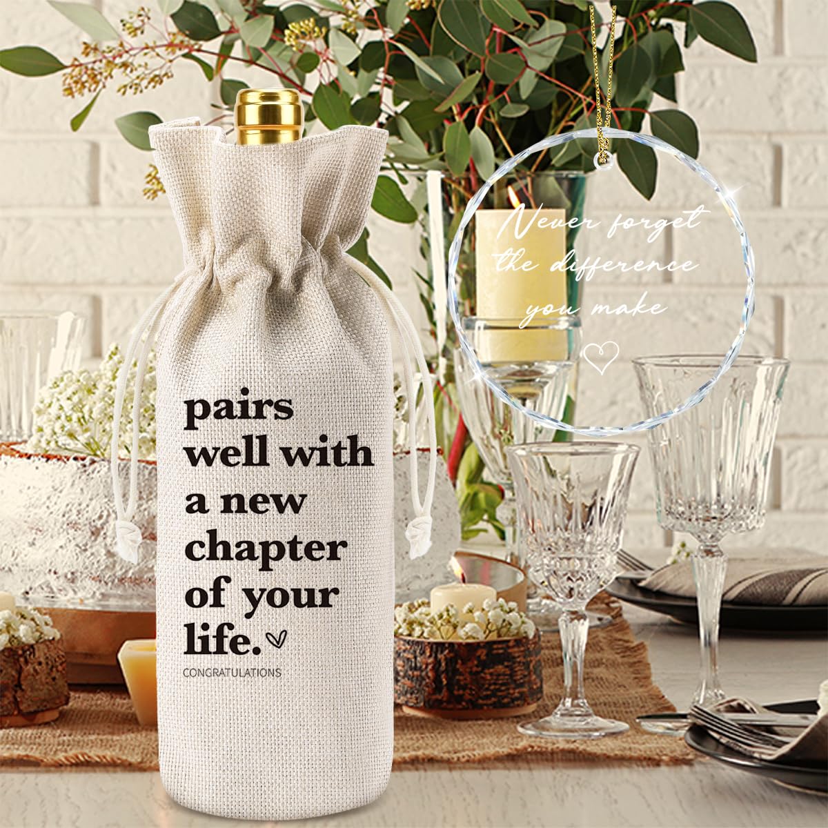 【New Chapter Gifts for Women Men】Our new chapter wine bag conveys a special message. "Pairs Well With a New Chapter of Your Life Congratulations" is printed on the wine bag, conveying the best wishes. Whether it is given to colleagues, women, or men, it is a very special gift. They will be surprised when they receive this gift.