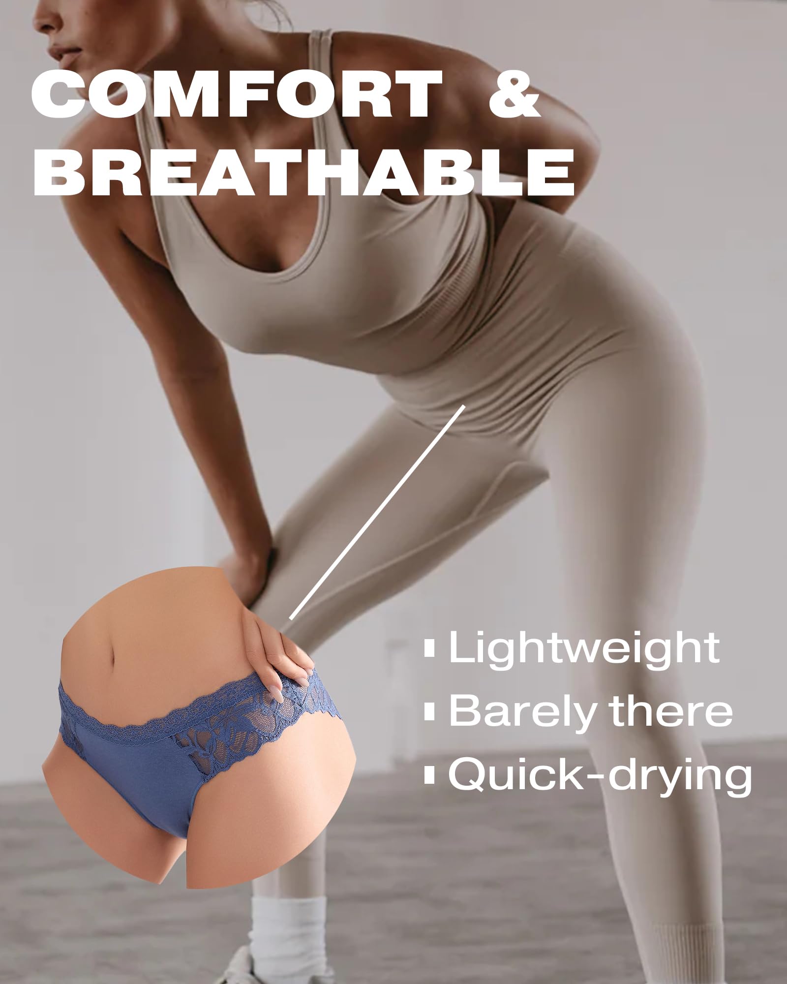 Lace underwear: Experience barely-there ease with ultra-breathable lace panels covering sides and back, create maximum airflow and rapid drying, moisture evaporates 2x faster than regular underwear for women, keeping you cool during workouts, focused at work, or relaxed in sleep. The featherlight design transitions seamlessly between activities.