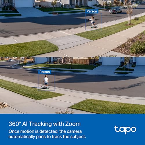 360º AI TRACKING: Detects motion within the camera's field of view, then automatically pans and tilts to track the subject across a 360º viewing range.
