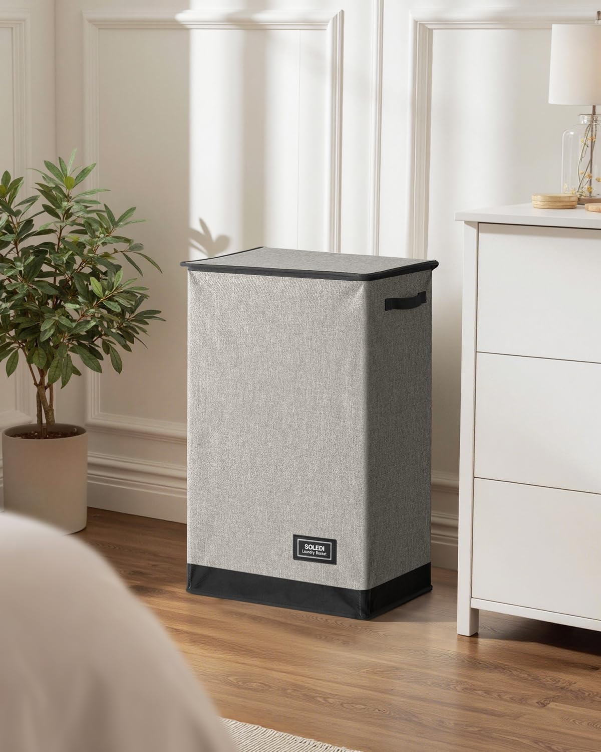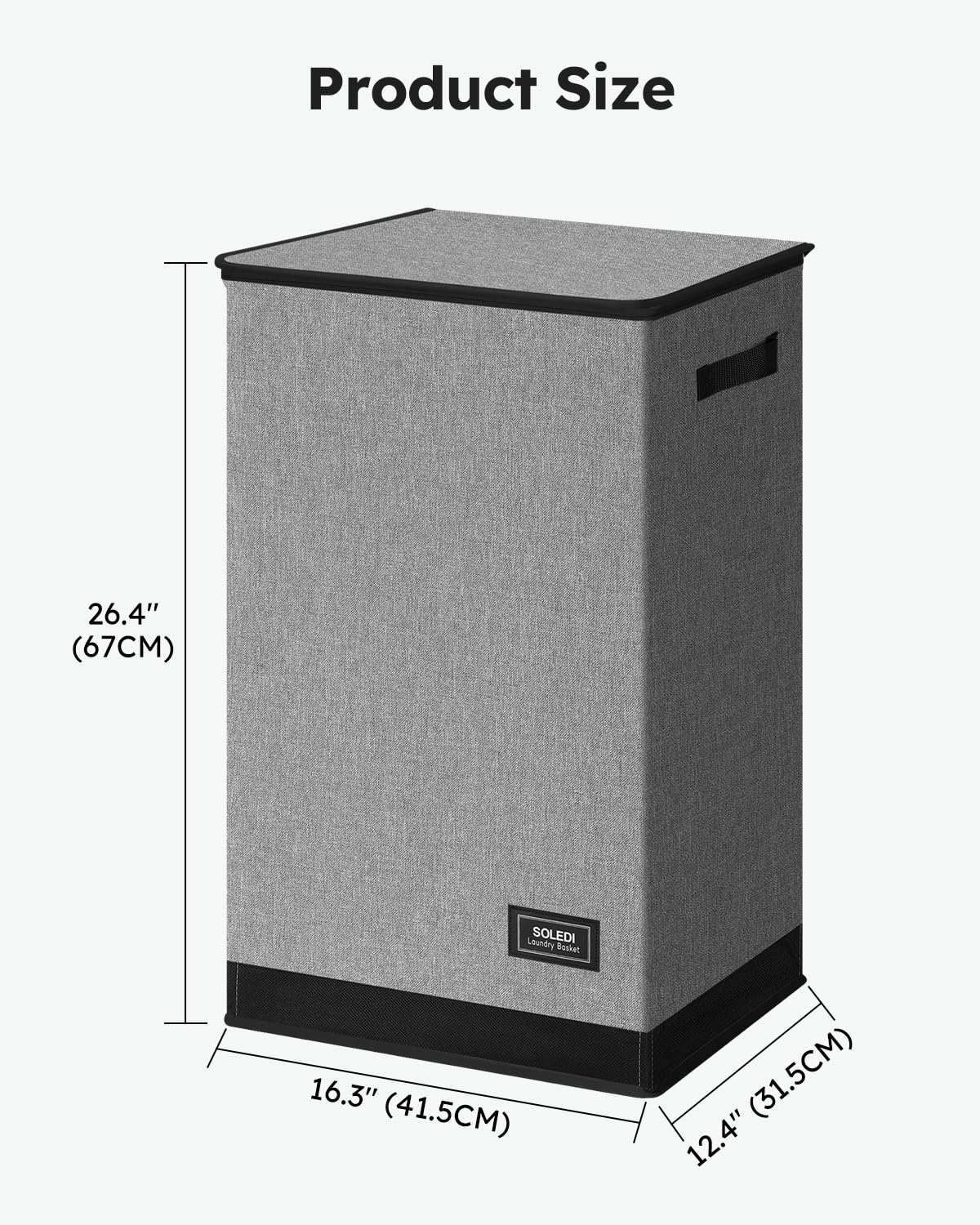 【90L Super Capacity】SOLEDI clothes hamper standing size 16.3"L×12.4"W×26.4"H, 90L large capacity clothes bin to meet the week's change of clothes storage, reduce the number of weekly trips to the laundry room. 90L tall laundry basket is large enough to hold all the family member's clothes or towels. Good choice for family life or touring car.