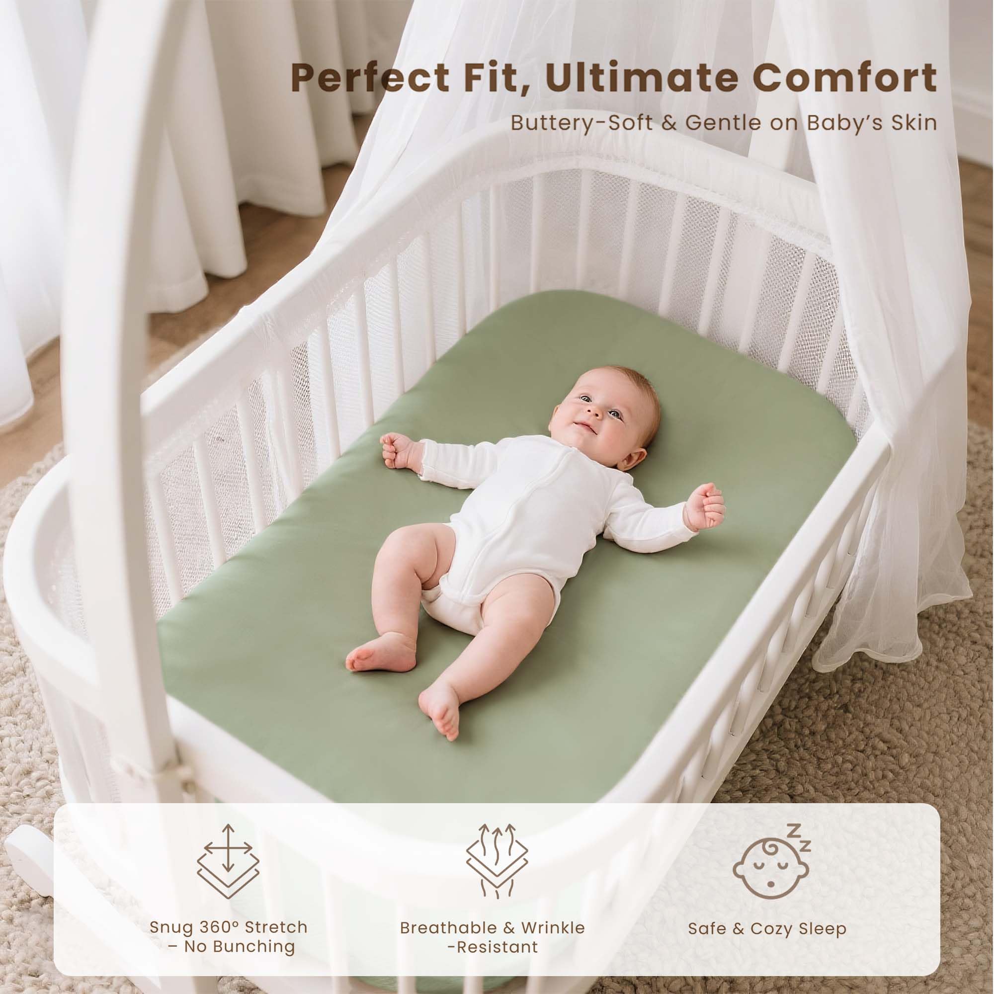 Easy To Care: Machine washable and durable, these bassinet fitted sheets maintain their softness and shape after every wash. Built to last, they ensure a fresh, clean sleep environment for your baby with long-lasting durability
