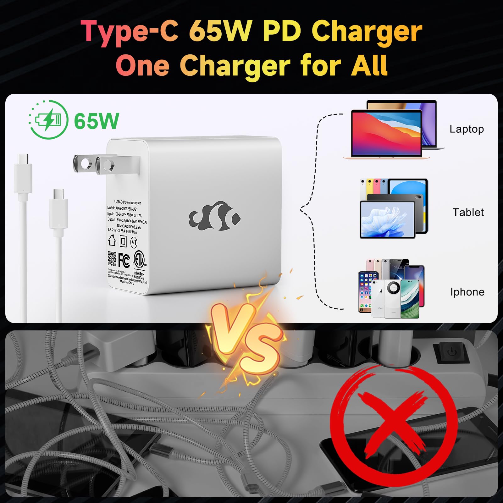 【65W USB-C PD Fast Charger Included】Enjoy the convenience of a 65W PD fast charger and a 6.56-foot USB-C cable. A 15-minute charge gives you 2 hours of use—making travel simpler. This versatile charger also powers your iPad, phone, camera, and more, so you travel lighter and skip charging anxiety.