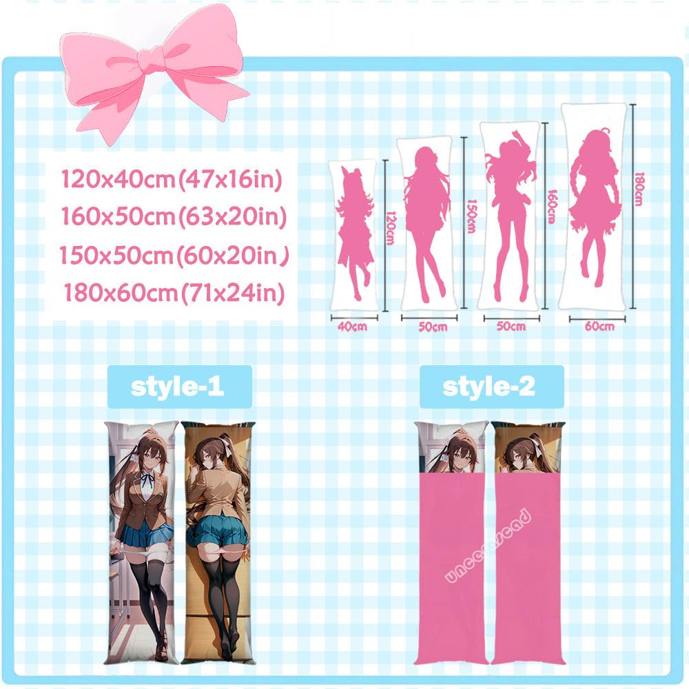 1. Anime body pillowcases offer versatile sizing:40×120cm (16×47") / 50×150cm (20×60") / 50×160cm (20×63") / 60×180cm (24×71"),Note: Listing includes pillow cover only.