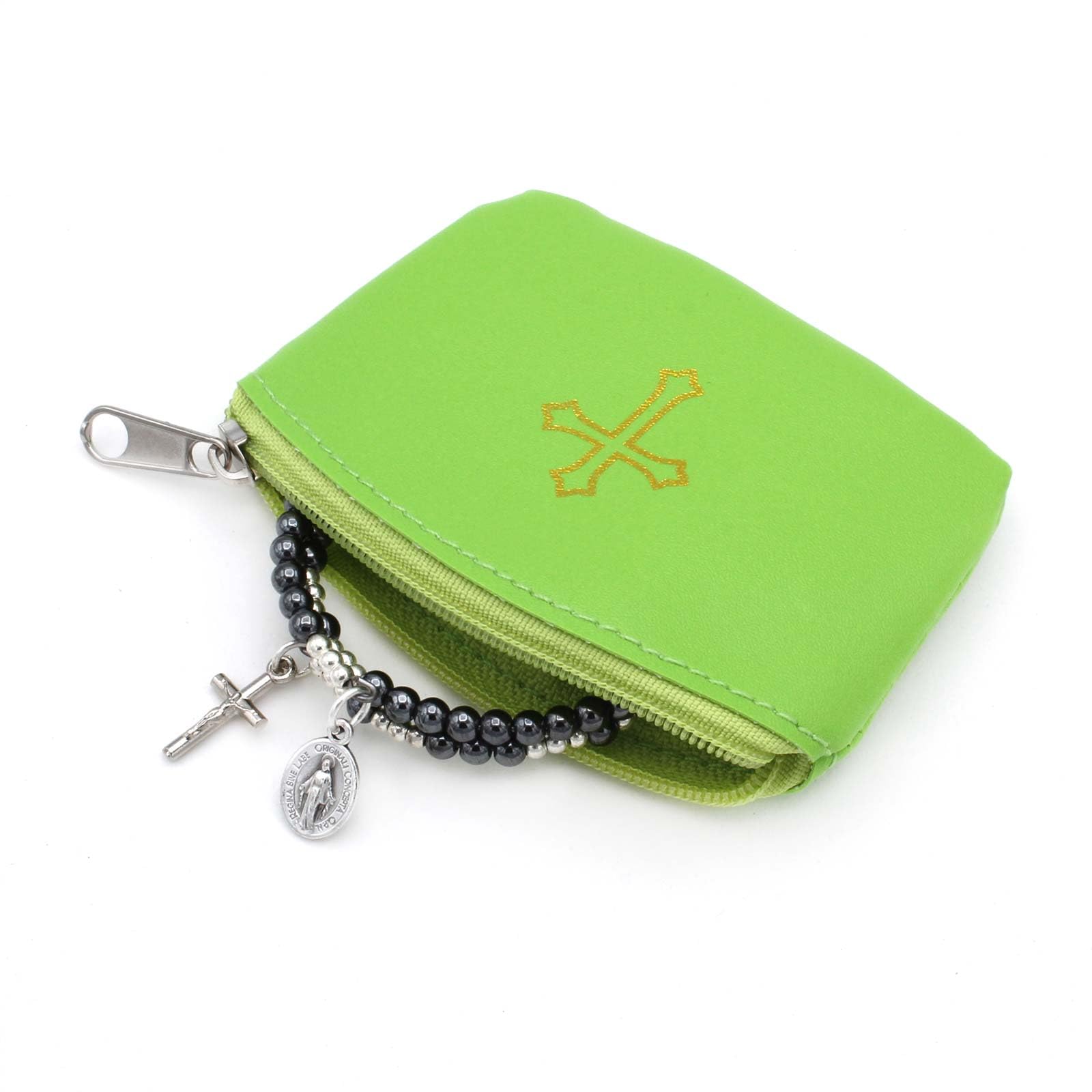 Green Leatherette Rosary Pouch with Zipper