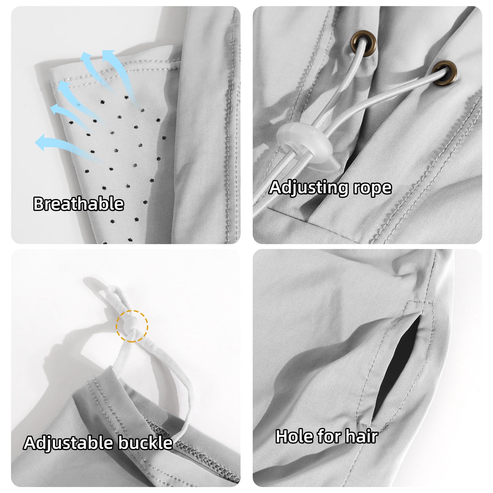 Adjustable Drawstring Design:We have upgraded the material of the adjustable rope and added an elastic buckle,makes it more flexible and won't come off the summer hood mask.which can easily adjust the size of the face range, which can be adjusted to a comfortable state according to your face circumference, which is good for men, women and teens.