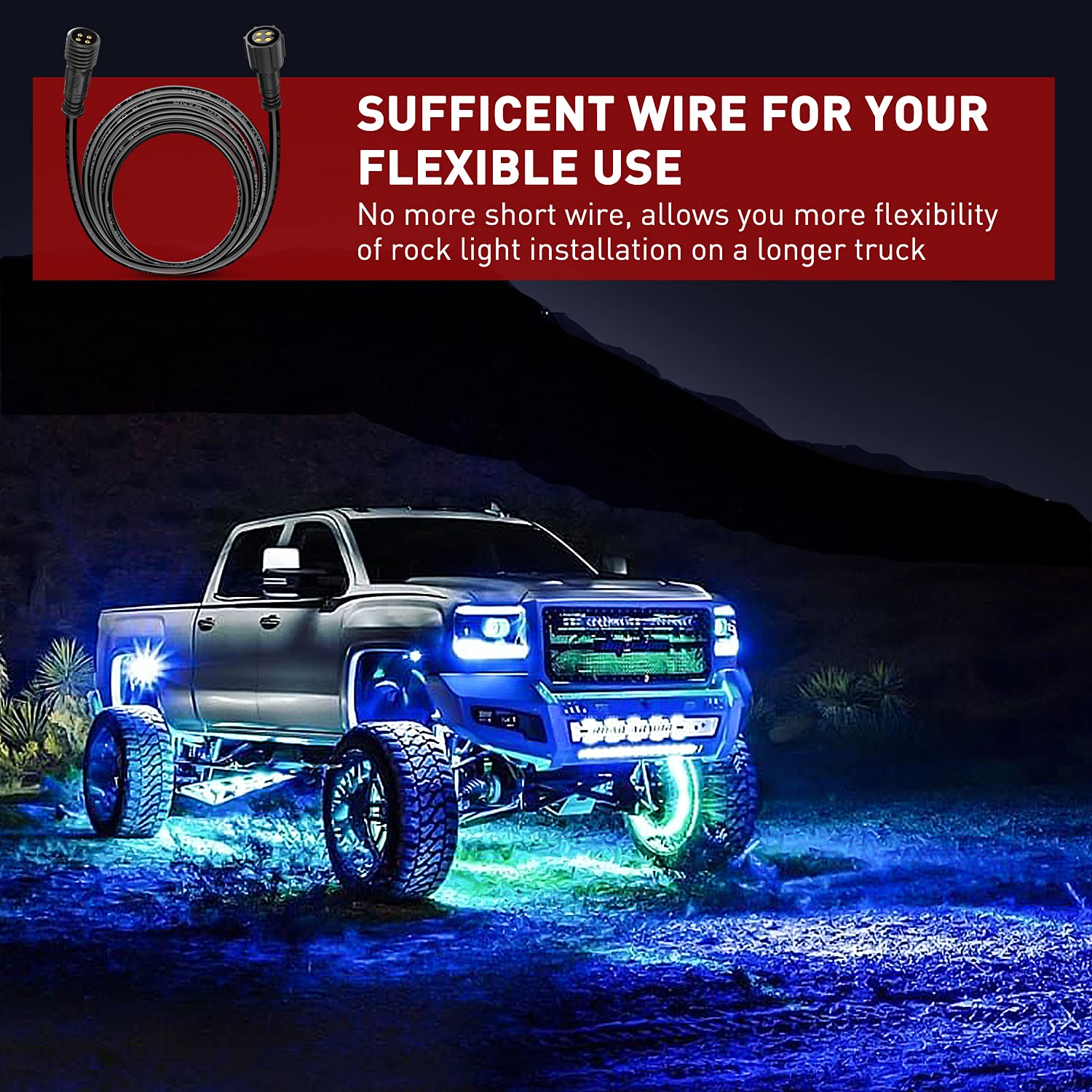 Function: Directly plug-n-play with the wire connector on controller box and wire connector on rock light, extending rock light wire length and getting your full flexibility for different rock lights mounting position, even on a longer truck. No more worries of insufficient wire length.