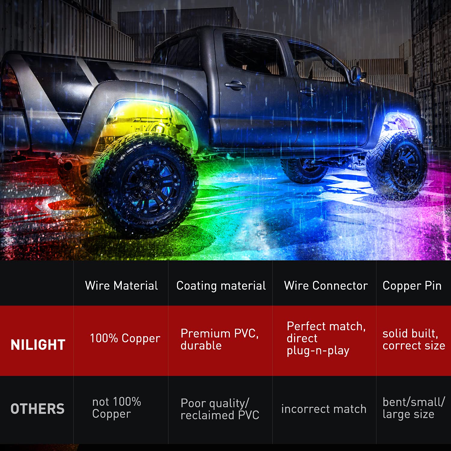 Fitment: Specifically fit for Nilight 4 and 8 pods RGB rock light kits, ASIN: B01MG5UXV4 and B08KF88G32.