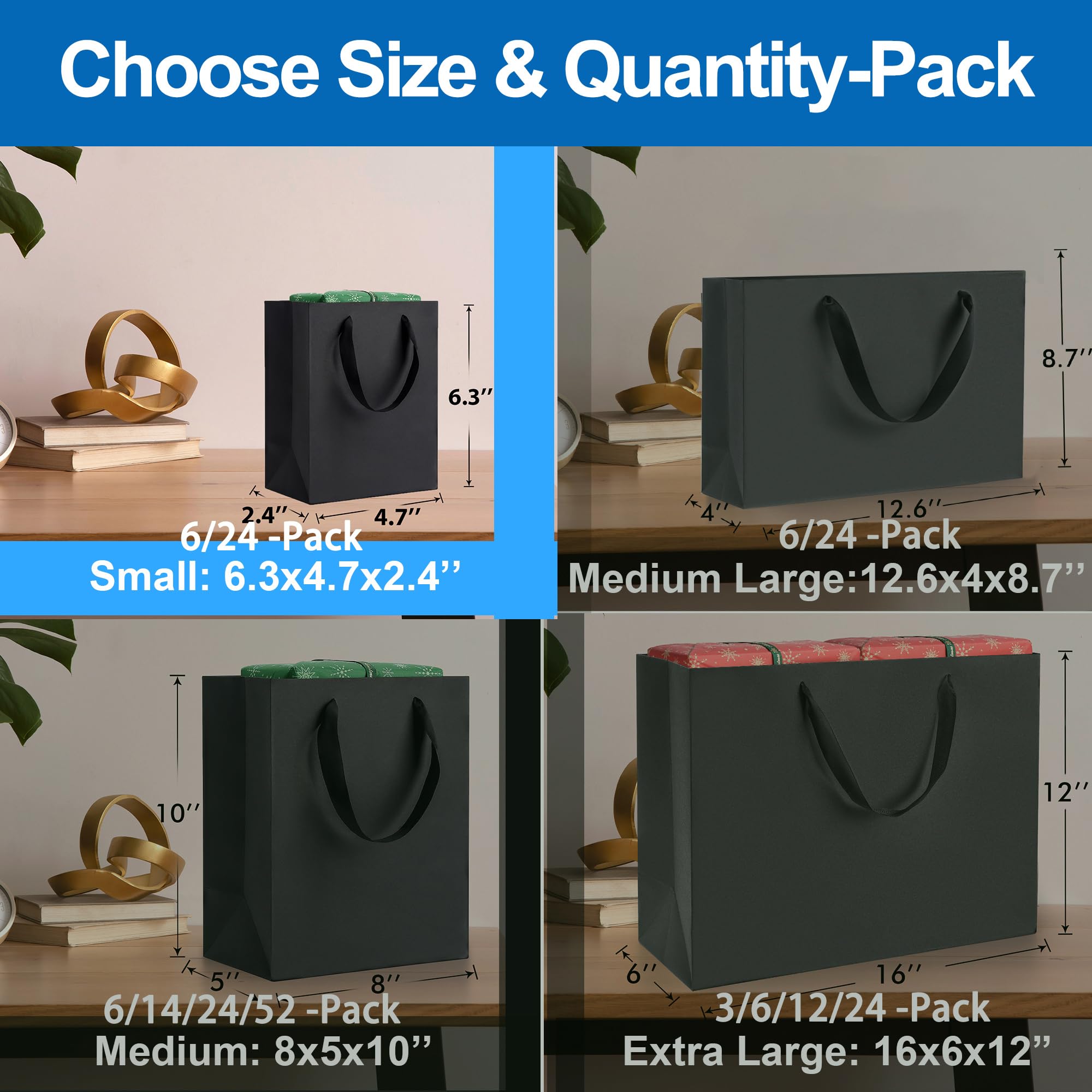 Perfect for Any Occasion: Black gift bags are good ideal for weddings, birthday, party, holidays, business, craft projects, retail and bridesmaid. These black gift bags with handles stylishly and conveniently meet all your gifting requirements. (Note: Please check the exact size.)