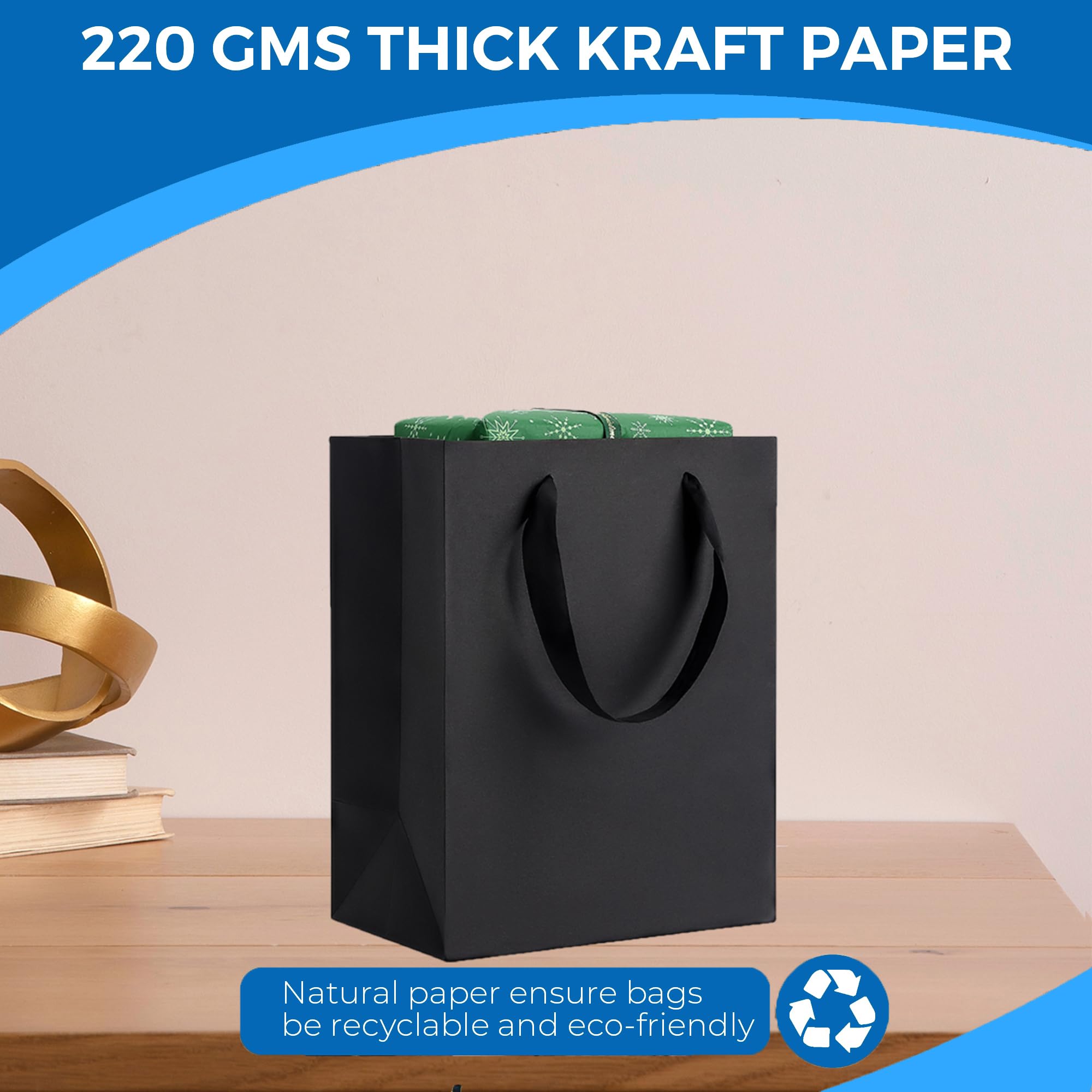 Sturdy Black Kraft Bags: Made with 220 GSM paper and a reinforced bottom, these gift bags can hold up to 10 pounds. It's a dependable gift-giving experience for all kinds of presents.
