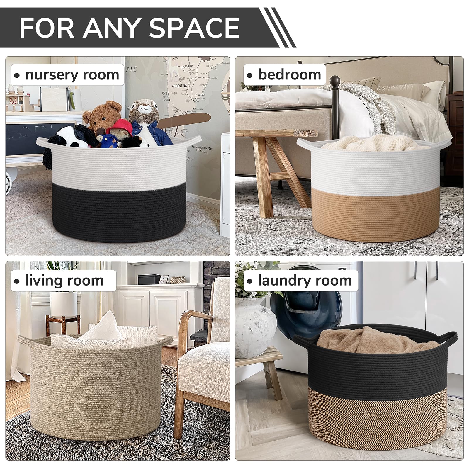 Versatile and Stylish Design: With a nice color, our black decorative baskett seamlessly complements any room décor, be it a laundry room, bathroom, or living area. Its chic design is a perfect match for modern, rustic, boho, or farmhouse styles