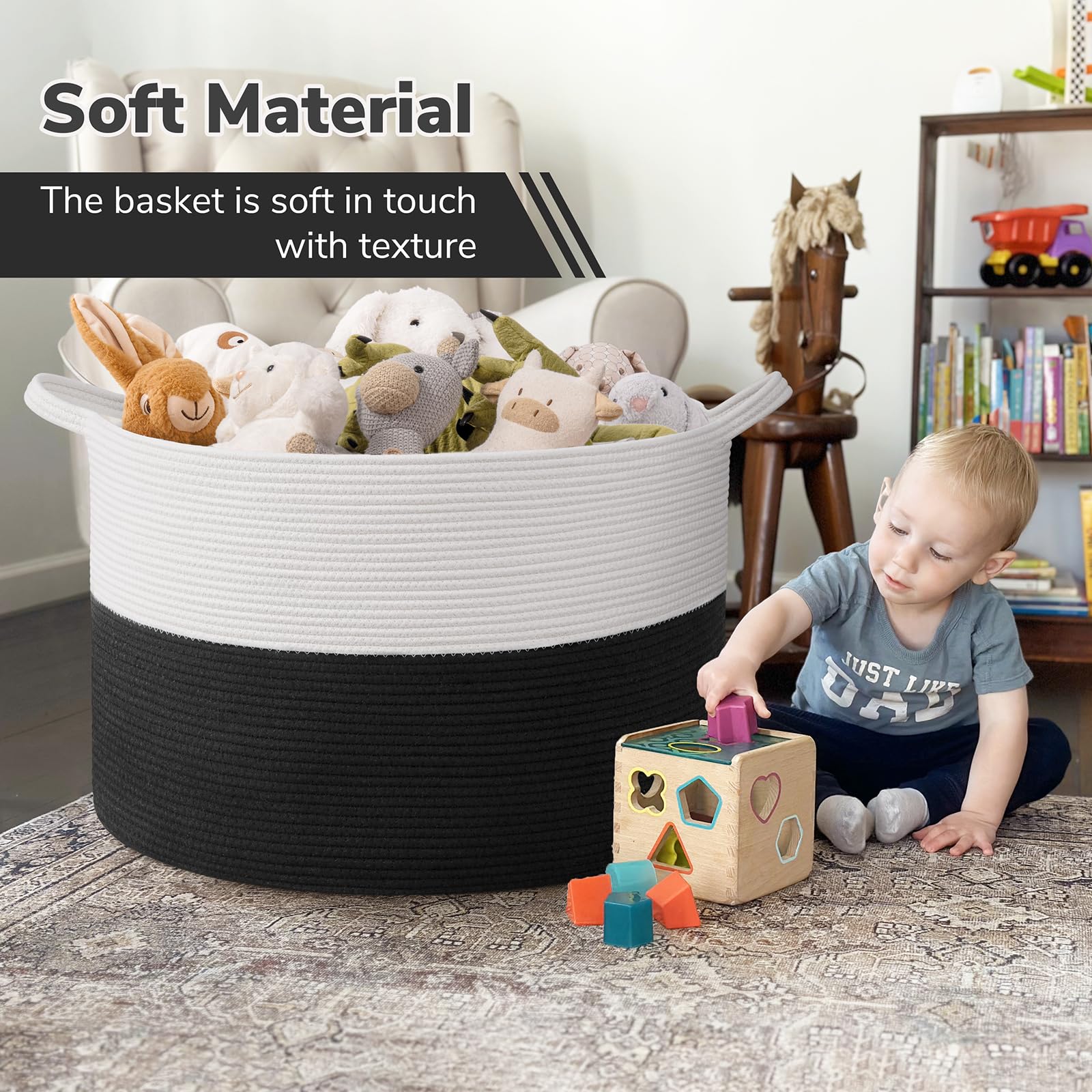 Versatile Use. Perfect for toy box, toy storage, and blanket storage, this basket is suitable for living rooms, bedrooms, nurseries, and laundry rooms.