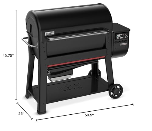 Smoke, sear, roast, and more on the Searwood XL600 pellet grill featuring a full temperature range from 180° to 600°F and DirectFlame cooking that creates bold flavorful sear marks and delicious golden browning. This grill heats up in 15 minutes or less*, cooks evenly, and features a full grate sear zone. Cook confidently with intuitive digital controls and Wi-Fi and Bluetooth connectivity that lets you monitor and control the smoker grill remotely, see live graphs of your cook, get readiness alerts, recipes, and more from the WEBER CONNECT app on your smart phone. The WEBER CONNECT digital LCD controller is simple and intuitive to navigate with a backlit knob and large, lighted display. Steel front and side tables (sold separately) add workspace to prep or pull food from the smoker. Large cooking capacity lets you cook on two levels at the same time. The deep 9.5"" top rack easily fits a brisket and can be removed to create a 11.5"" tall space that accommodates larger foods like roasts and poultry. Smoker's side hopper location makes it easy to load pellets and is sized perfectly to fit a standard 20-pound bag of pellets. The hopper is also equipped with a pellet release handle that makes it easy to change pellet flavors. The fuel gauge shows current pellet level and sends you notifications when pellet level is low. Experience smooth, continuous pellet flow for up to 20 hours of worry-free remote outdoor cooking. Then, clean up quickly and easily with the pull and clean grease and ash management system located at the front of the outdoor grill. The Searwood XL 600 also features a porcelain-enameled lid that's highly durable and won't rust or peel. The grill's ergonomic design includes large, durable wheels and a built-in handle, making it simple to move across uneven ground and patio pavement. The easy-access maintenance panel is straightforward to troubleshoot if necessary. *Based on lab conditions of 77°F ambient temperature with premium hardwood pellet fuel