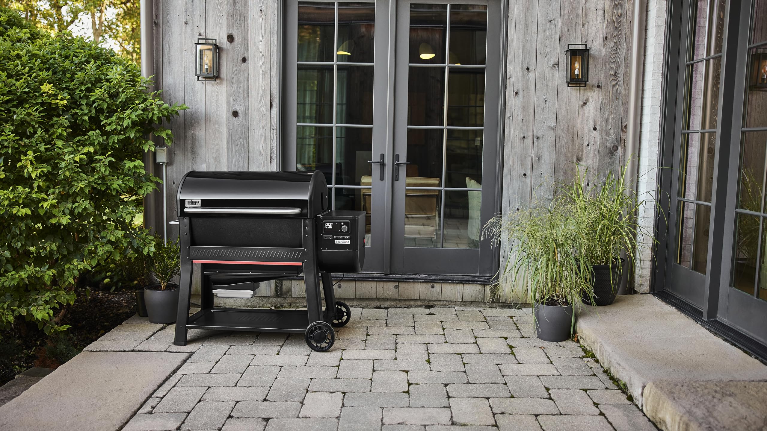 Accessories: Rust-resistant griddle insert transforms smoker into an outdoor griddle; Heavy-duty rotisserie crisps and browns; WEBER CRAFTED grates and custom-fit grillware let you explore new techniques on pellet grill (all items sold separately)