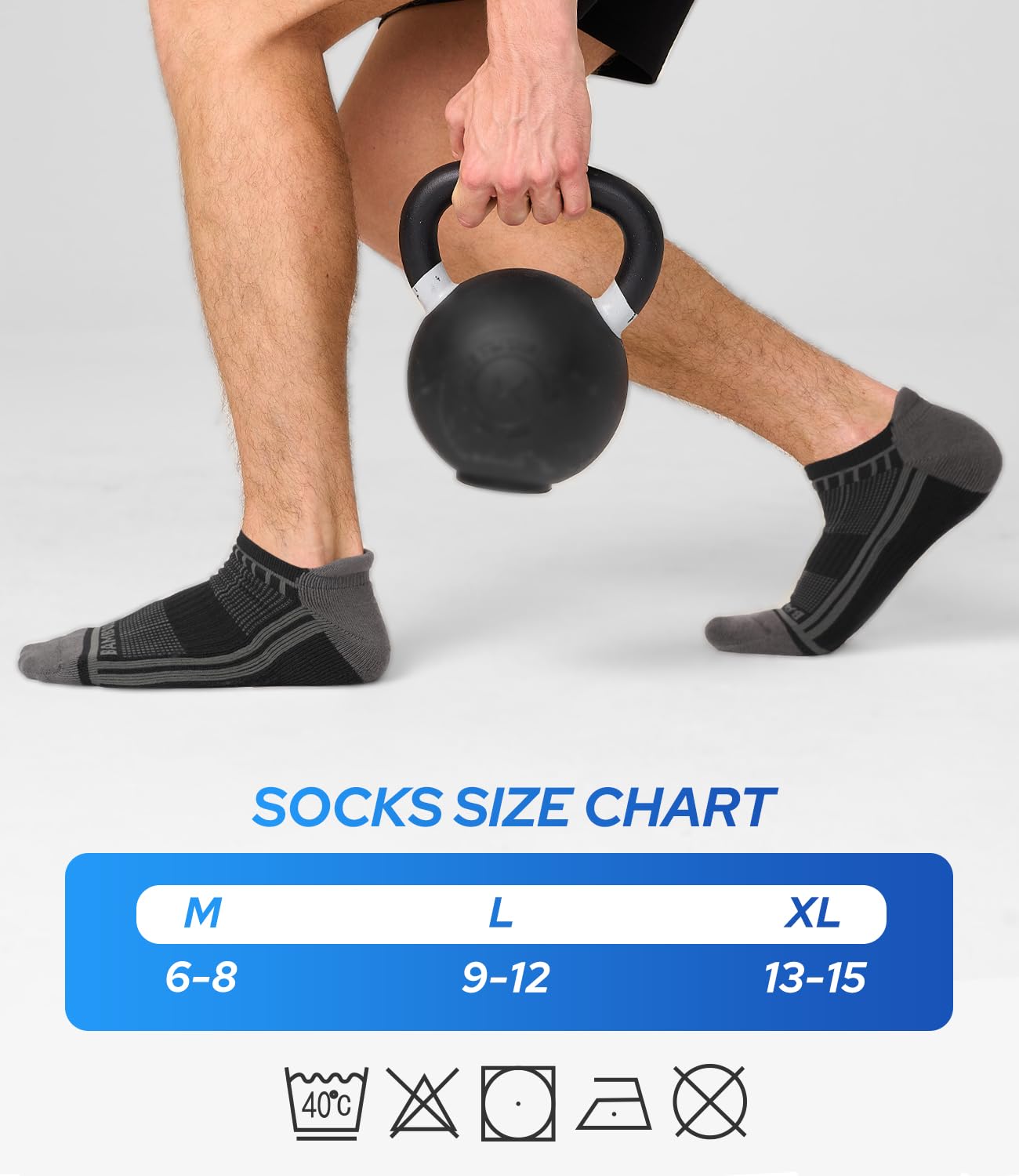 The cuff stays in place during movement, while the ankle length adds extra protection. Cushioned soles absorb impact, making these socks ideal for running, training, or gym workouts.
