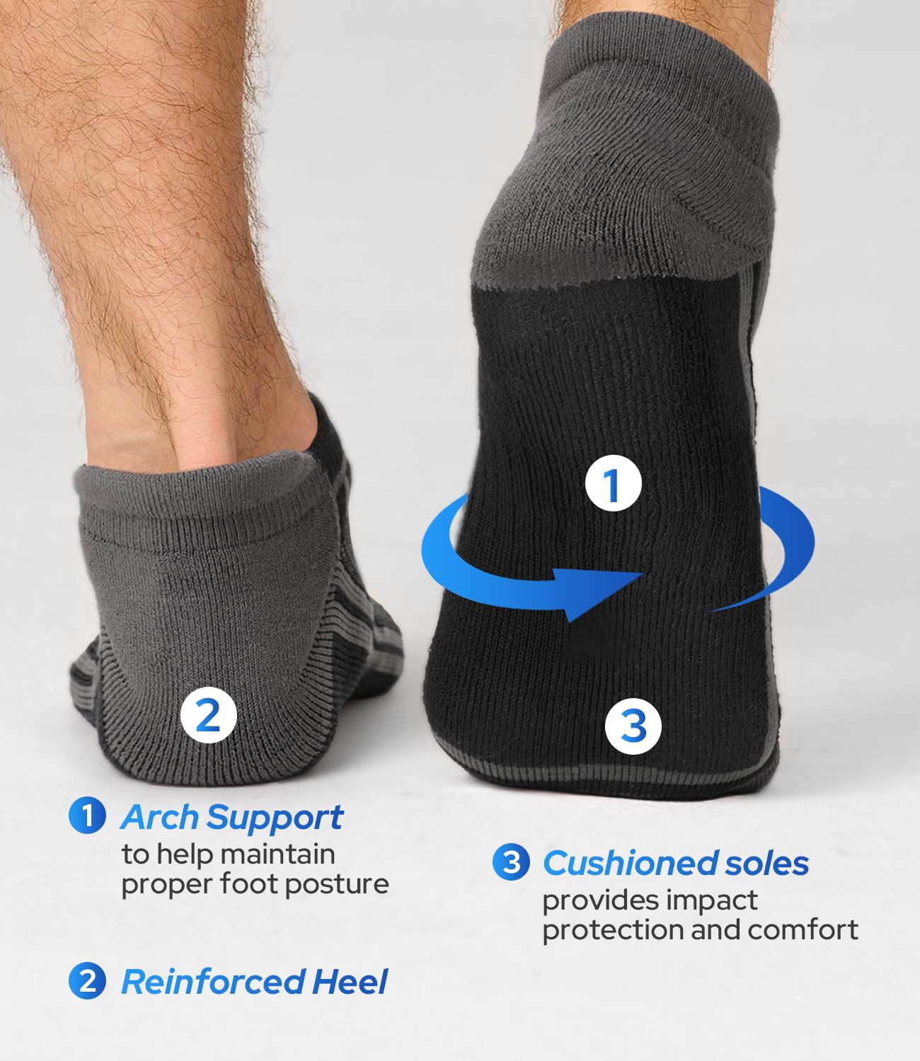 These Athletic socks offer extra arch support to help maintain proper foot posture, reduce foot fatigue, and enhance overall comfort and balance, making them ideal for both active days and long hours on your feet at work.