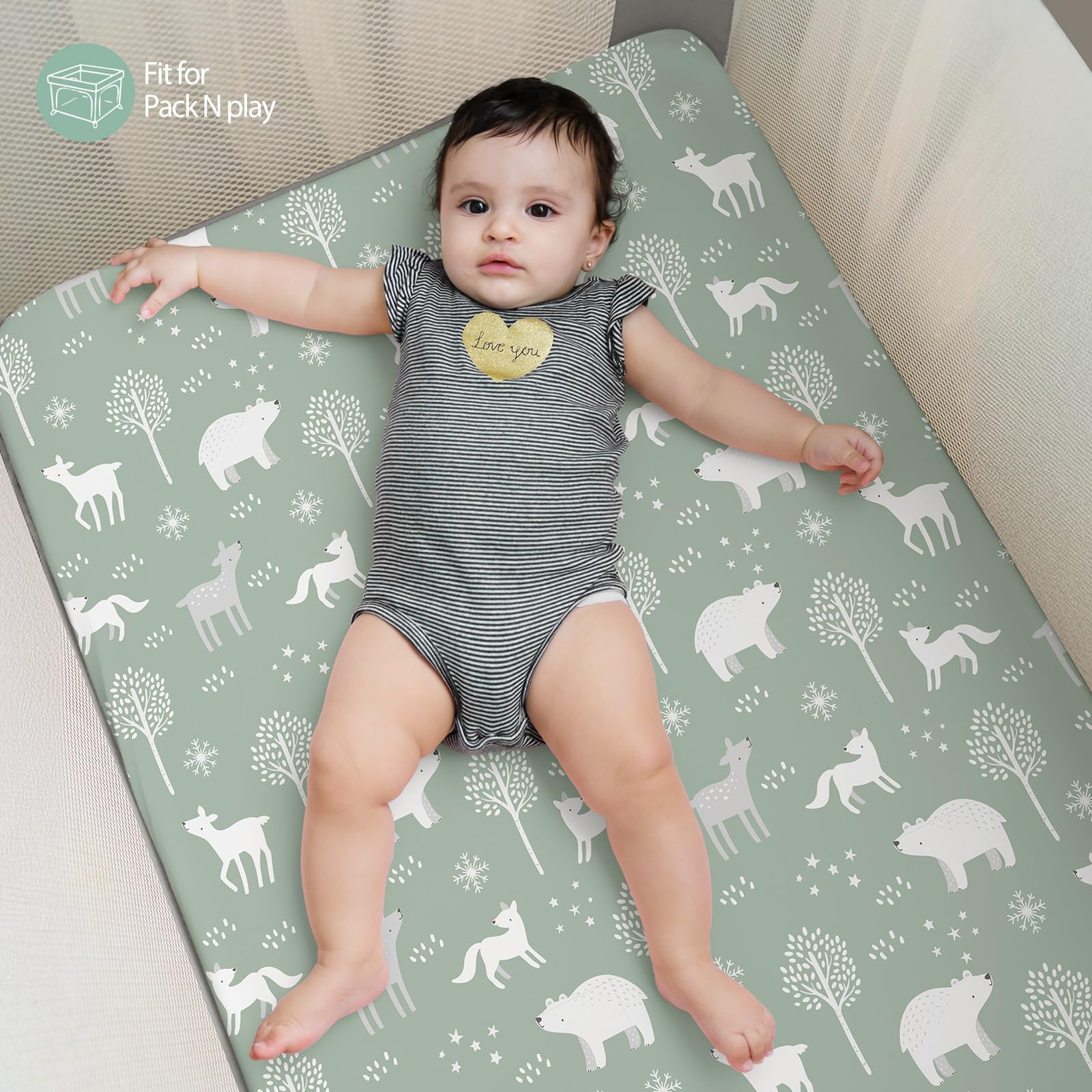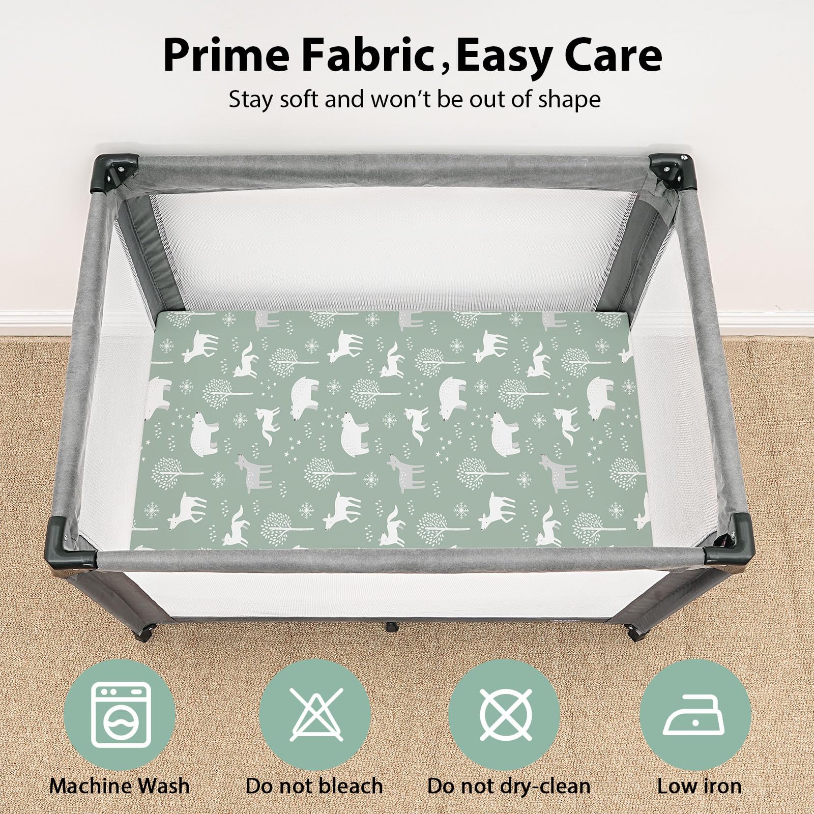 Soft & Skin-friendly Fabric: Crafted from premium microfiber with advanced knitting techniques, our pack and play mattress sheets are ultra-soft and gentle, perfect for even the most delicate and sensitive skin. Designed to keep your baby comfortable and relaxed, they promote sound sleep and support healthy growth.