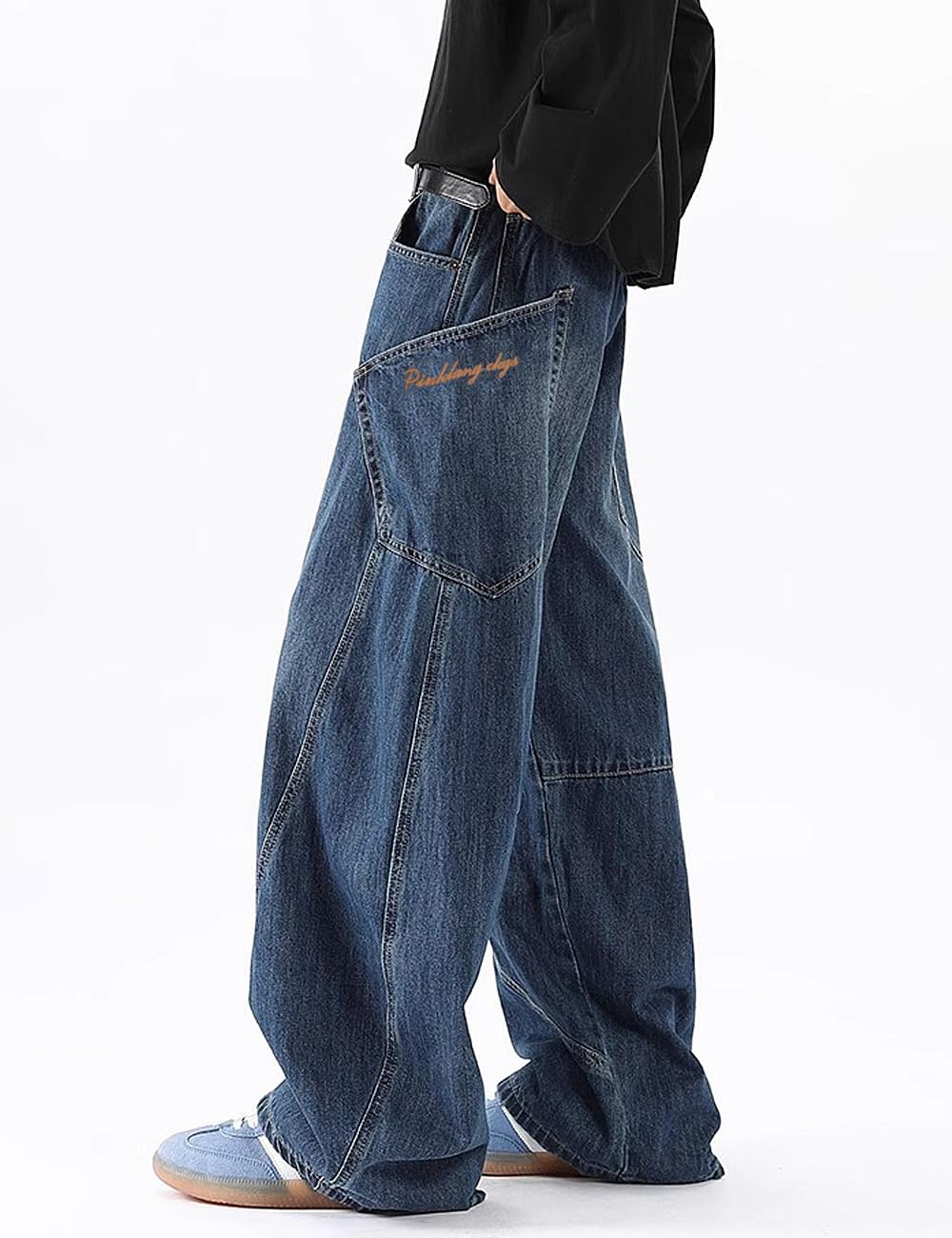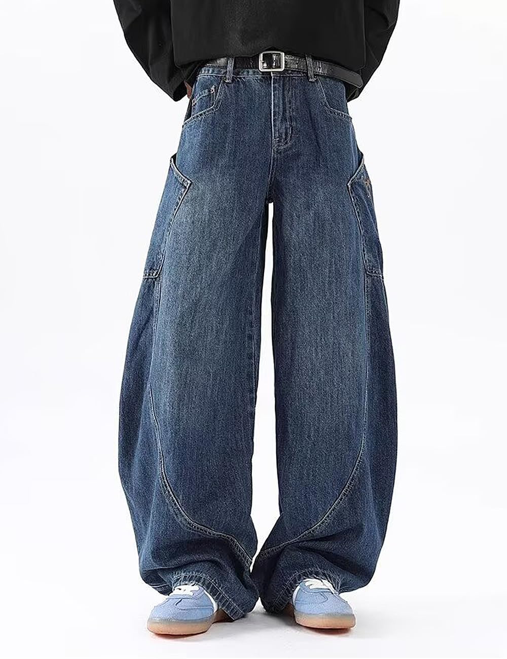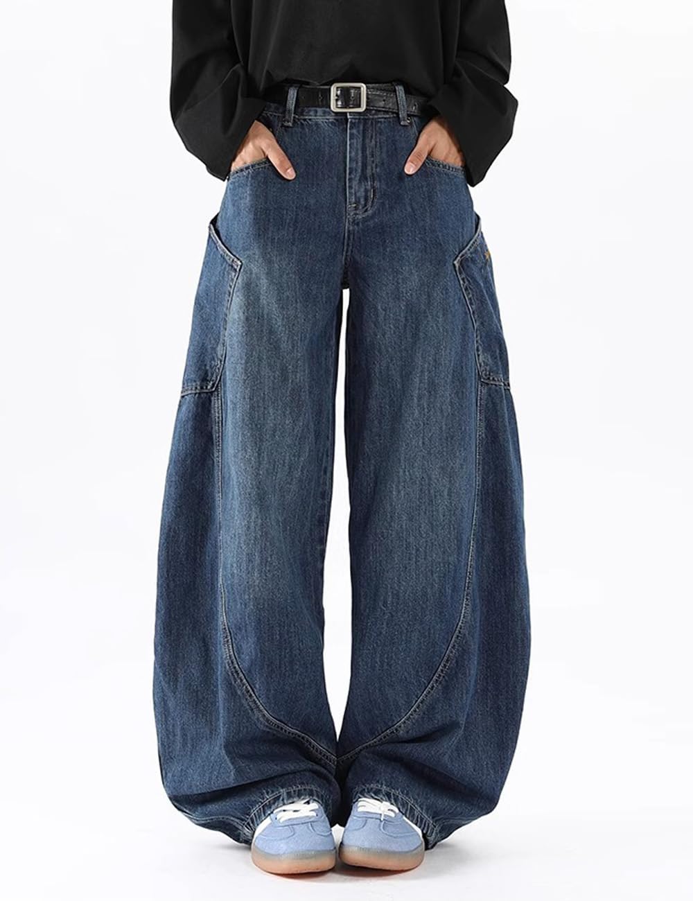 Design: Vintage light wash hip hop style jeans, solid color, wide leg, oversized pockets on both sides of the thigh are designed to be stylish, classic diagonal pocket on both sides and a small pocket