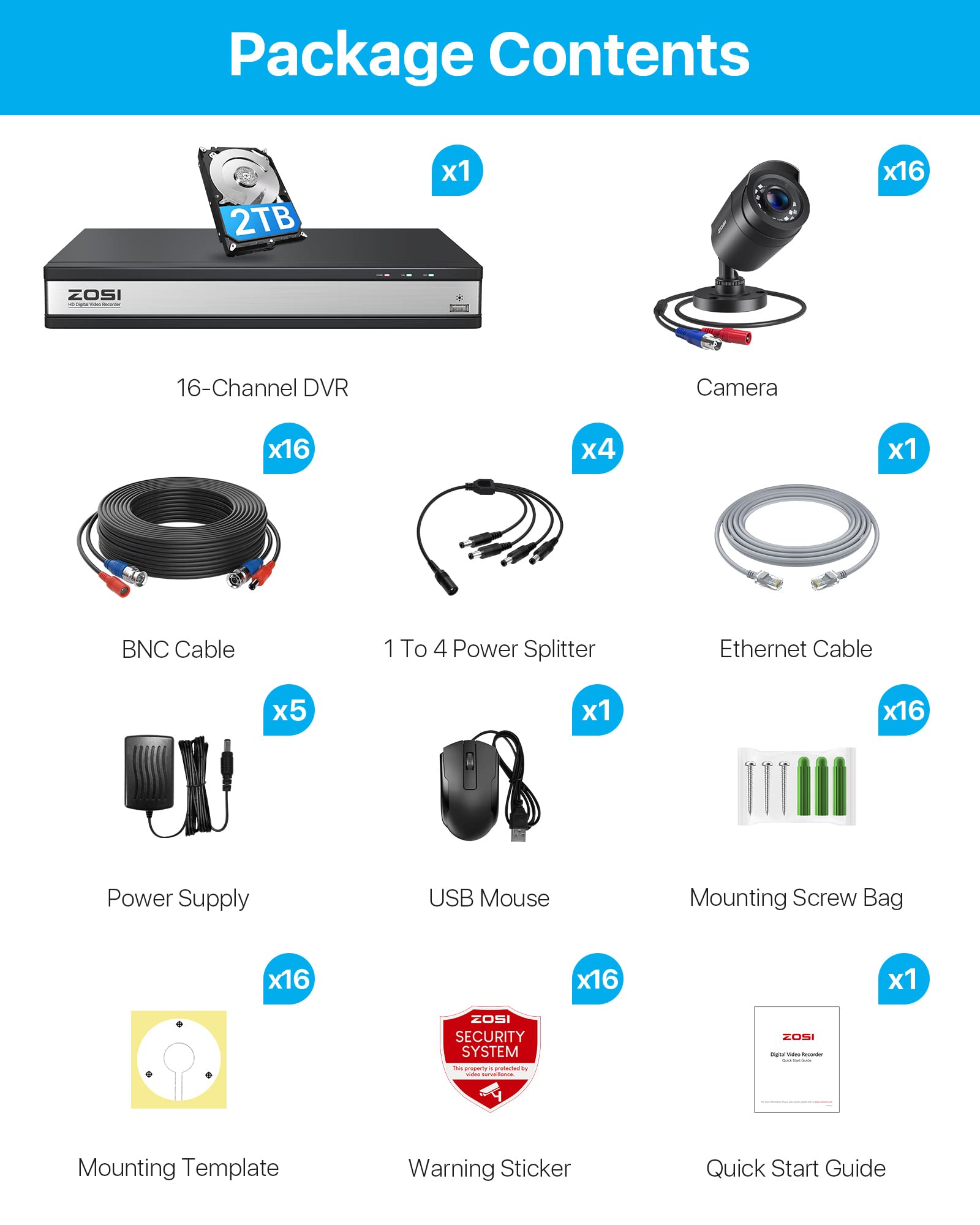 【16pcs Weatherproof Bullet Camera,80ft Night Vision】These Camera use Aluminum Metal, Can be installed in outdoor or indoor place.Up to 80ft night vision in total darkness and 130ft Night vision in ambient light.