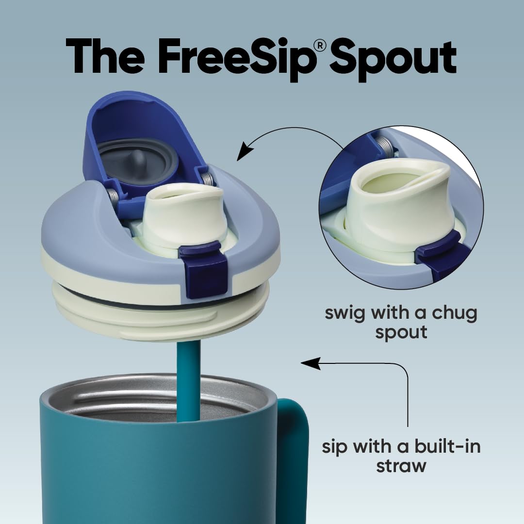 Versatile FreeSip spout lets you choose how you drink: Patented 2-in-1 FreeSip spout gives you two options when drinking; sip upright through built-in straw or swig by tilting back the spout opening
