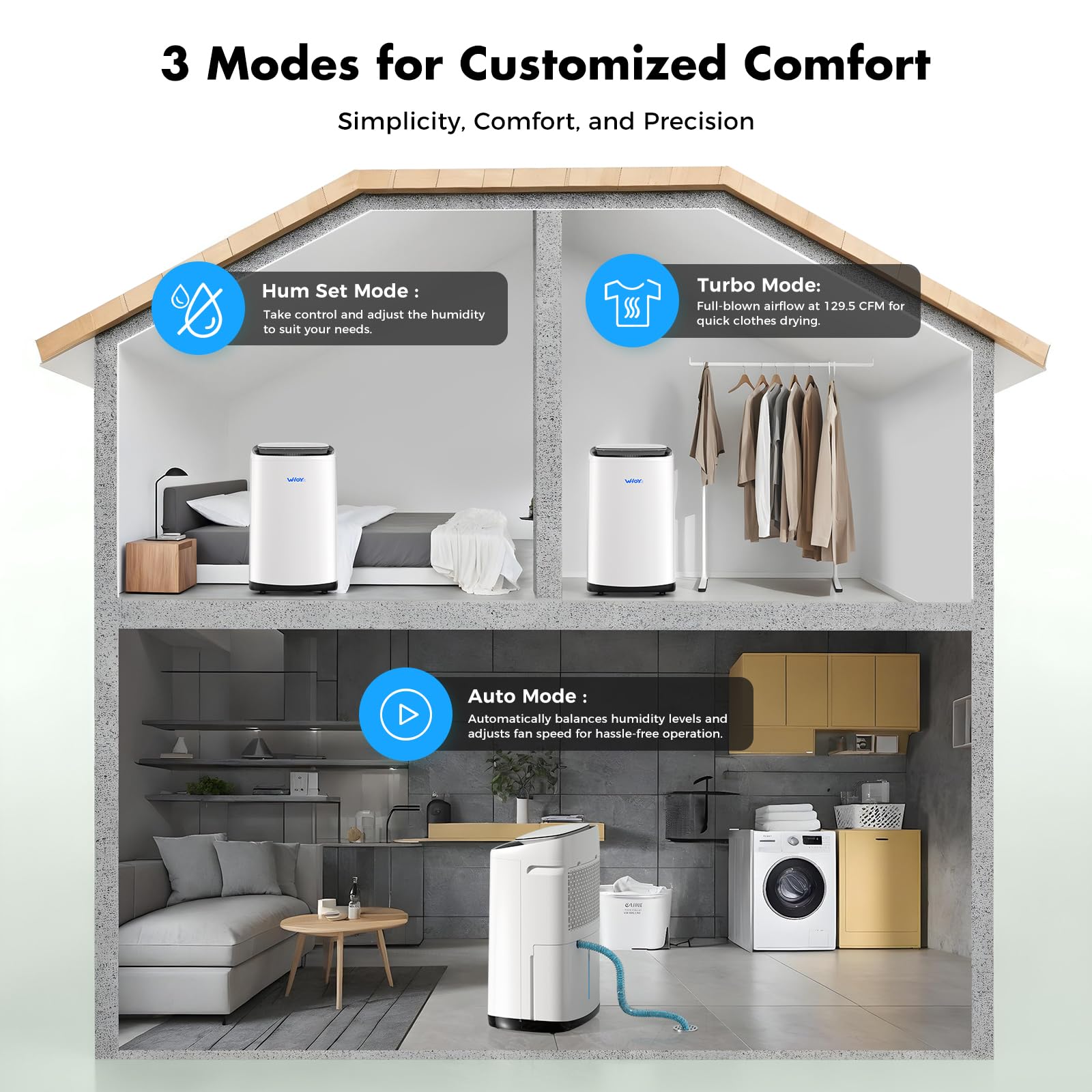 【Smart Features for Modern Living】Our newly designed architecture integrates a high-performance chip for millisecond-level humidity detection, maintaining your ideal comfort range through proprietary algorithms. The exclusive power-off memory function pairs seamlessly with smart plugs—or enables operation via app control—automatically resuming function after power restoration. Perfect for smart homes, RVs, or boats.