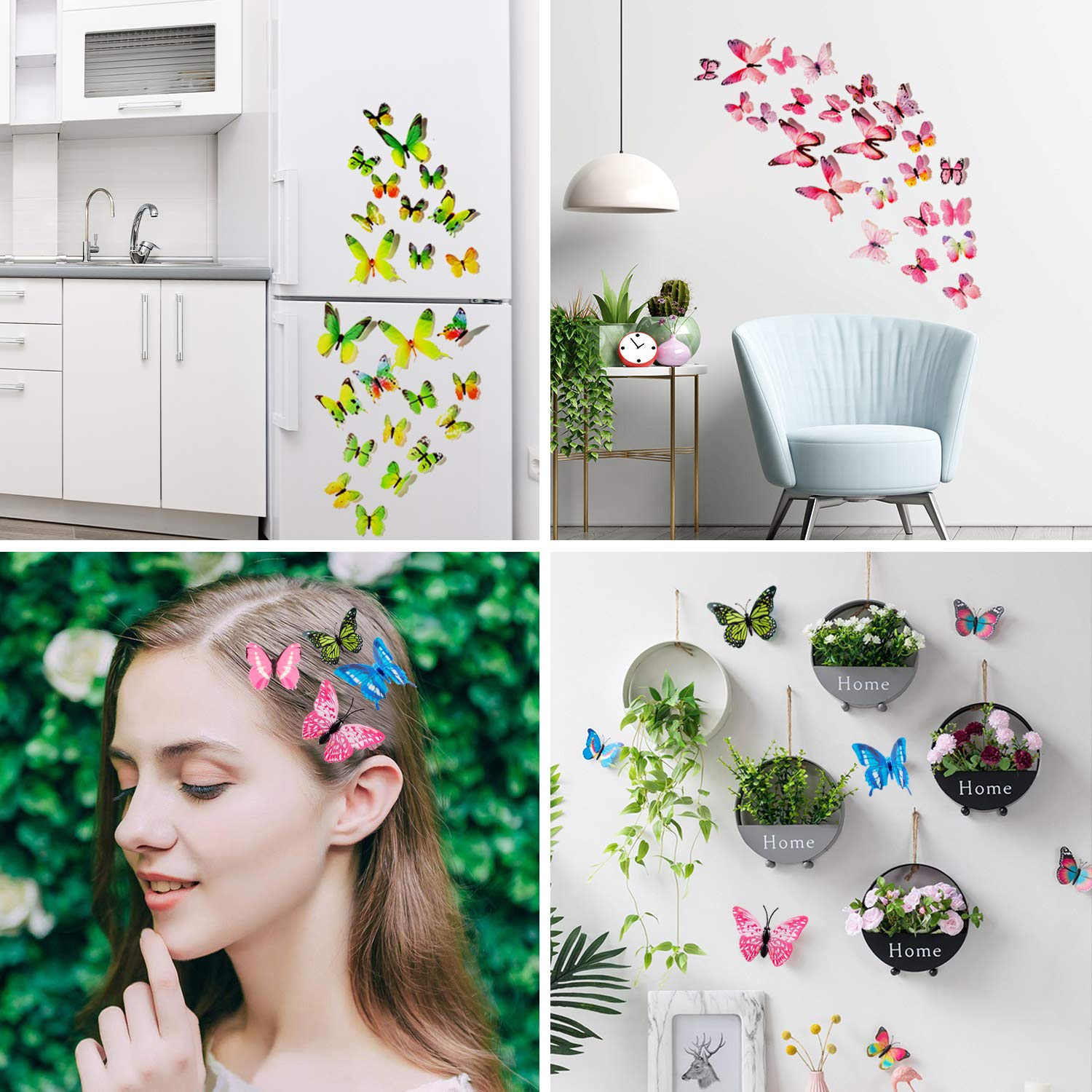 【Easy to Install】You pop each butterfly out of the package and then bend the wings to make them 3-D, then you stick one of the foam strips onto the butterfly’s belly and stick it to the wall.Make sure the surface is clean and smooth when applying them.
