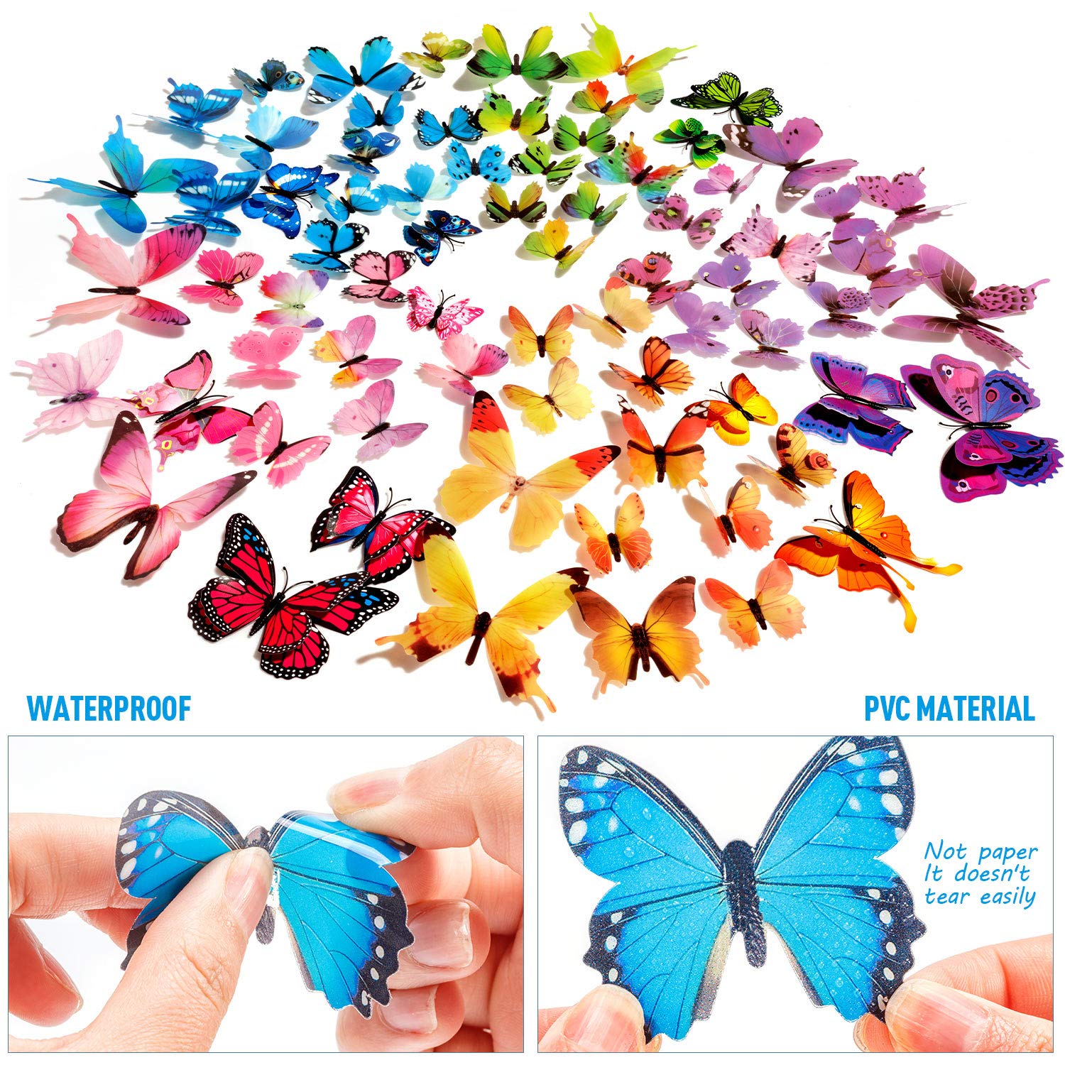 【Lasting & Reusable】The butterflies are made of PVC, waterproof. Butterfly wall decals can be used repeatedly and last a long time.