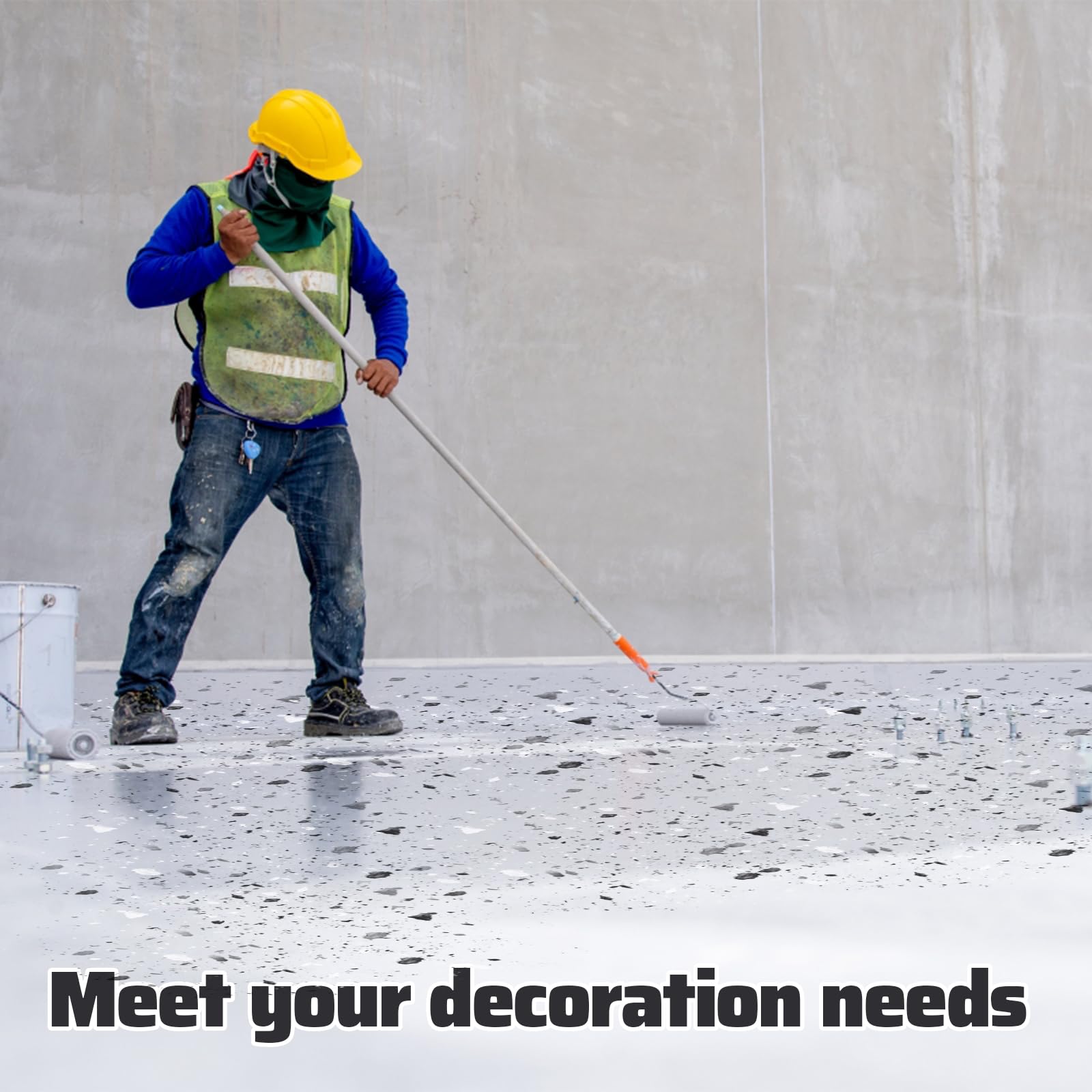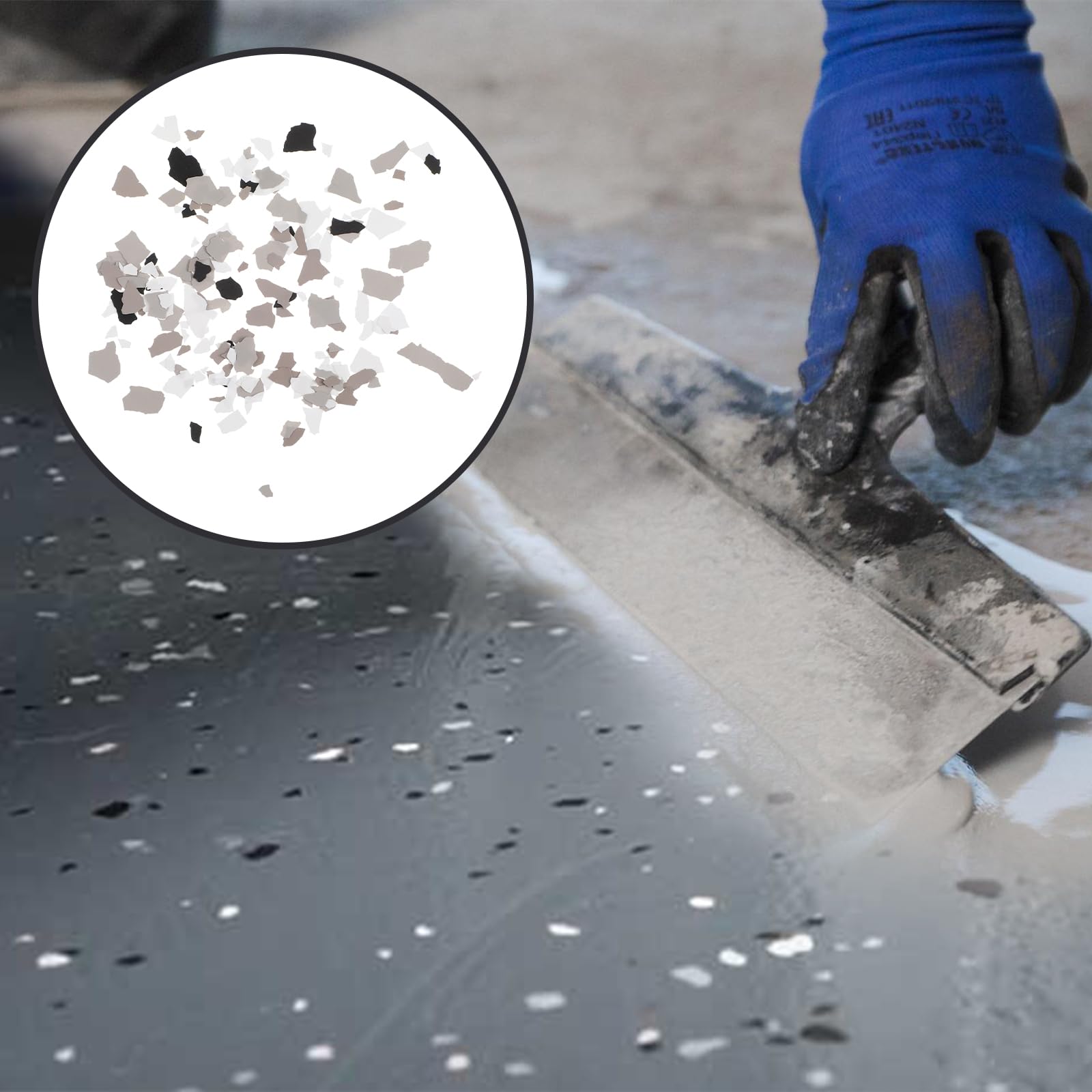 Easy to Apply: our floor flakes are easy and convenient for you to use, you just need to sprinkle a layer of concrete floor coatings on the ground, and then apply a layer of paint to complete the construction, to achieve a permanent adhesion