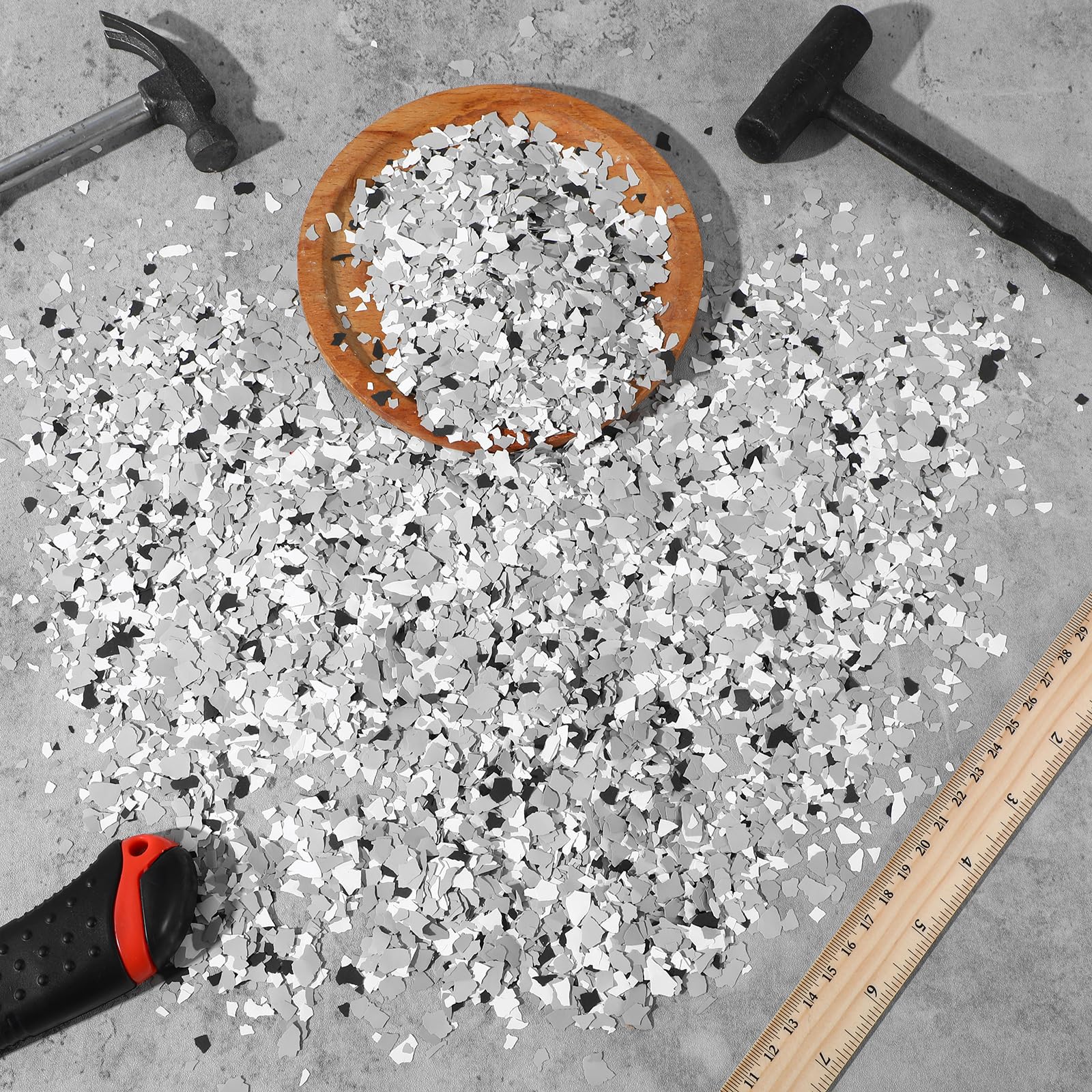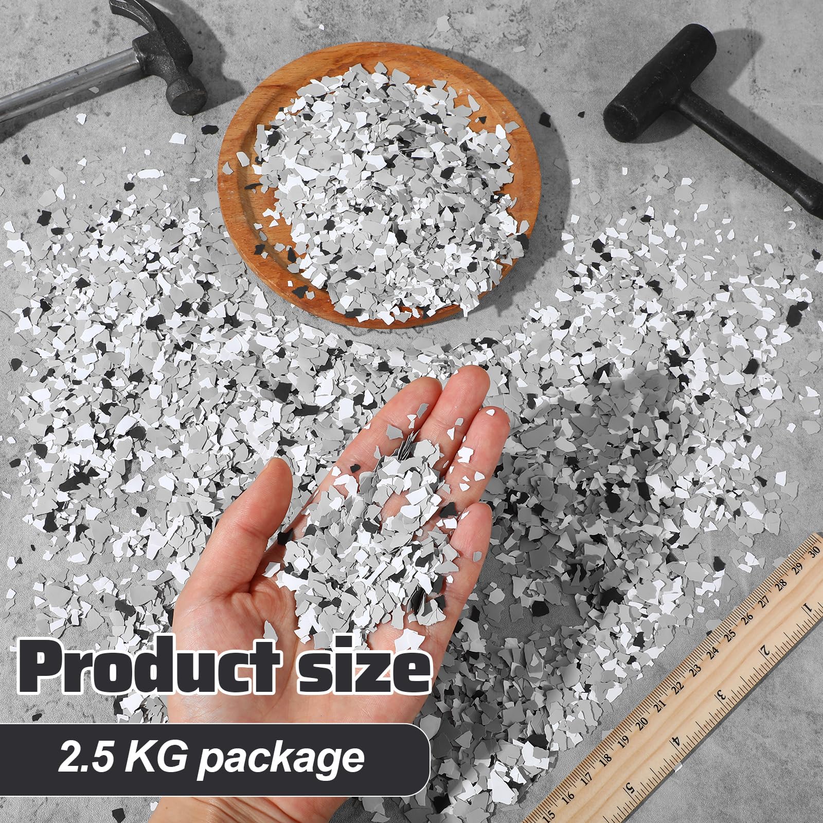 Reliable Material: the concrete paint flakes are made of rock slices, small and lightweight; Each piece of the floor flakes is about 2-4 mm/ 0.08-0.16 inch, providing you with different sizes to match