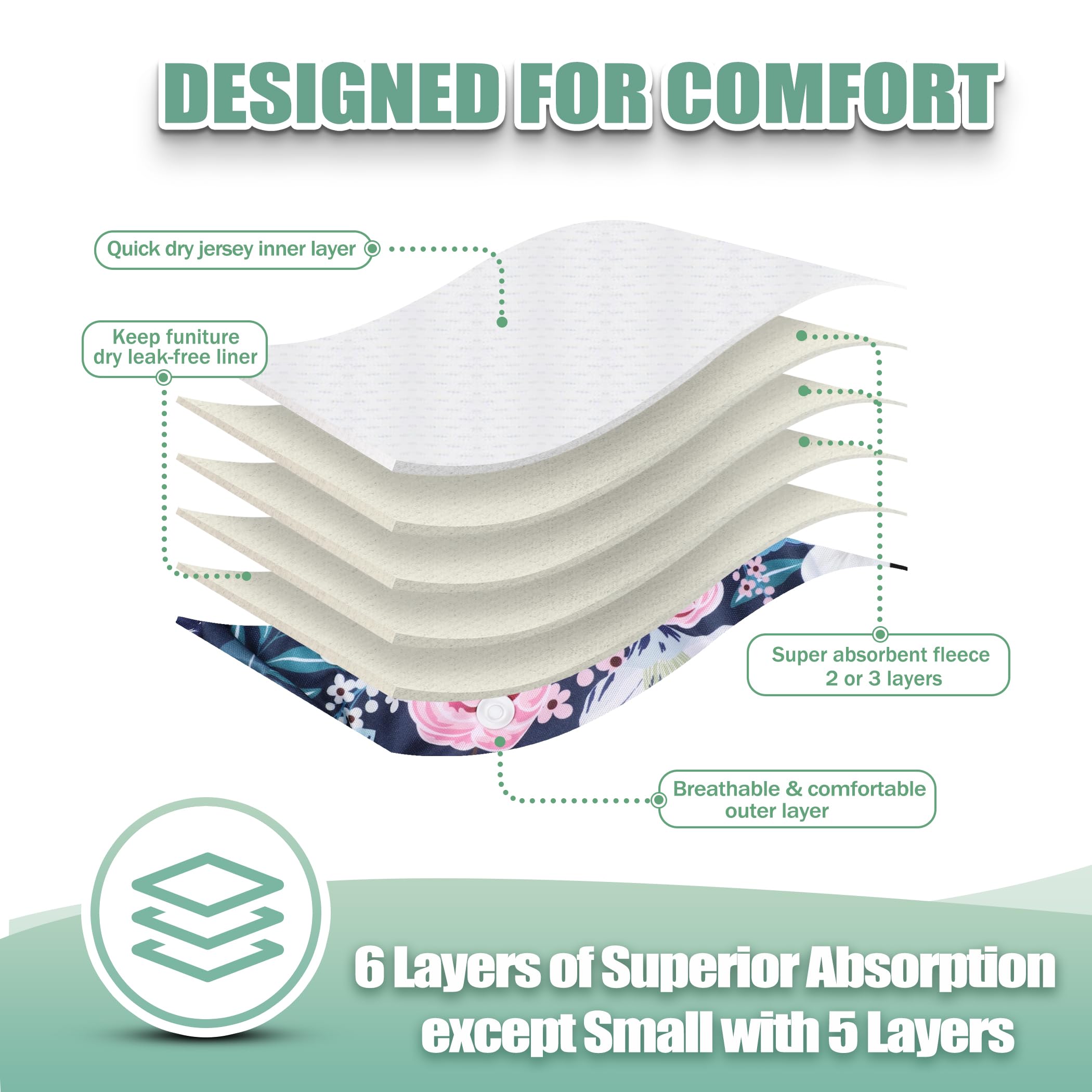 Strong Absorbent Cloth Dog Diapers - Pad is sewn into the diaper and a leak-free outer layer to keep off leaks and damage to rugs, carpets, chairs and sofas.