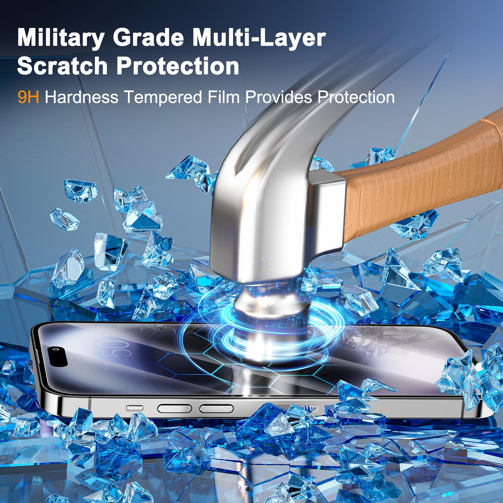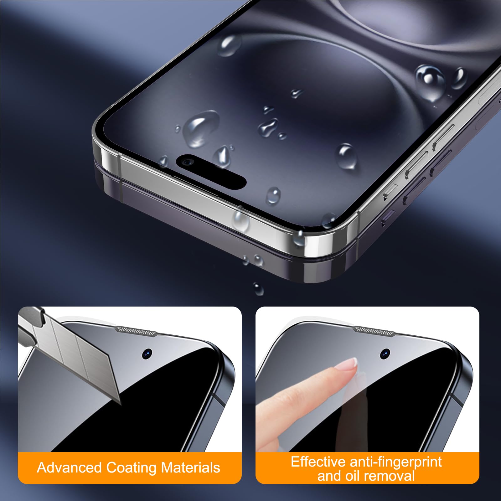 Anti-Scratch, Anti-Fingerprint, High Sensitivity: 9H hardness iPhone 16 screen protector is specially tempered to strengthen the surface of the screen protector to withstand external scratches and impacts more effectively and reduce screen damage, rounded edges are integrated to maintain the original response sensitivity to keep typing fast and accurate and gaming videos smooth