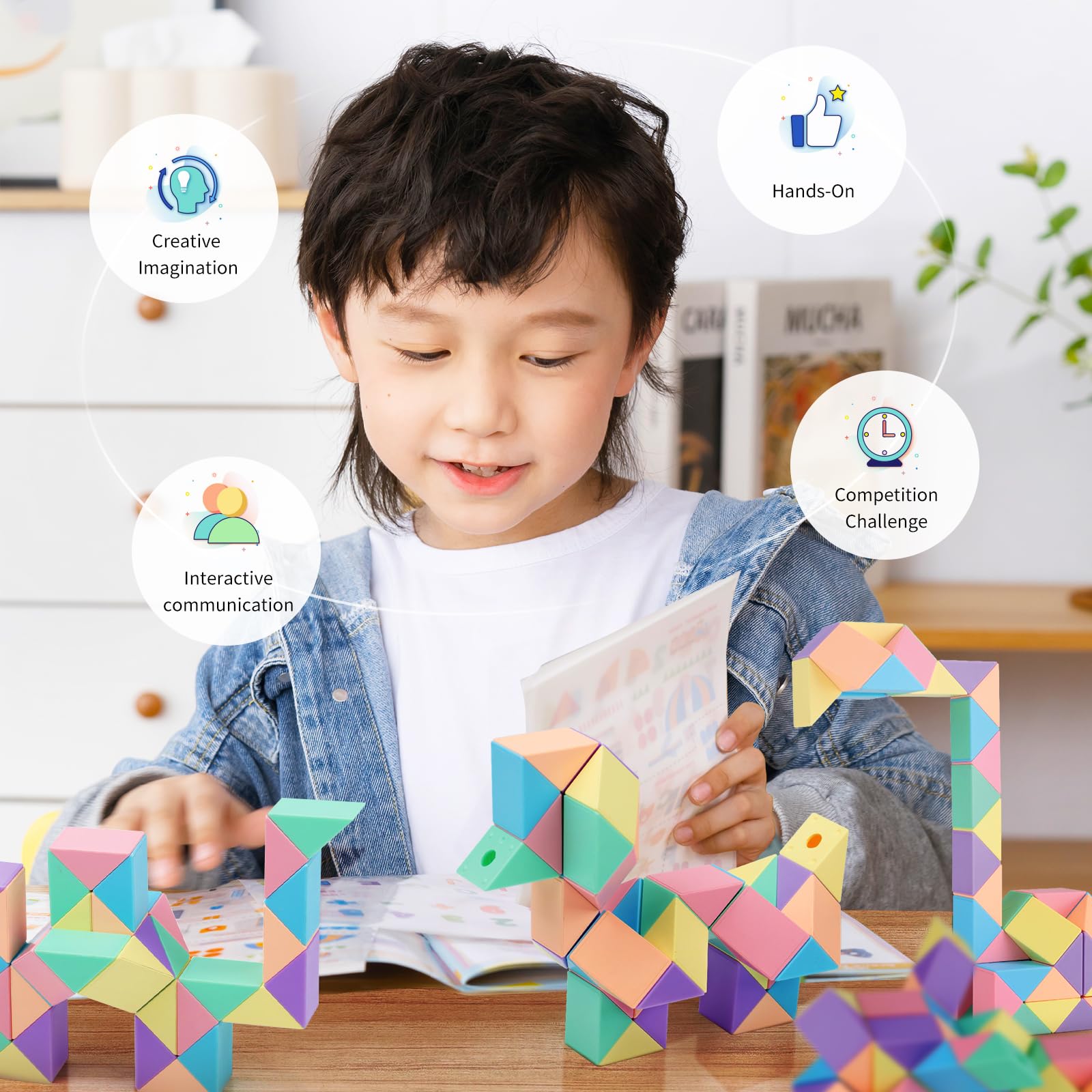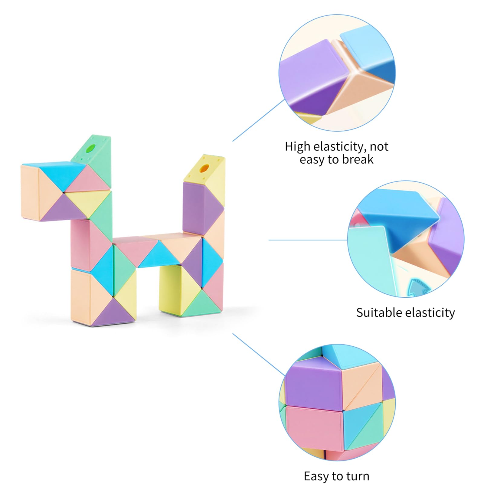 EXERCISE LOGICAL THINKING SKILLS - The twistable design challenges users to think creatively and problem-solve as they manipulate the puzzle to form different shapes and patterns. People can create all kinds of things and they're really using their imagination.