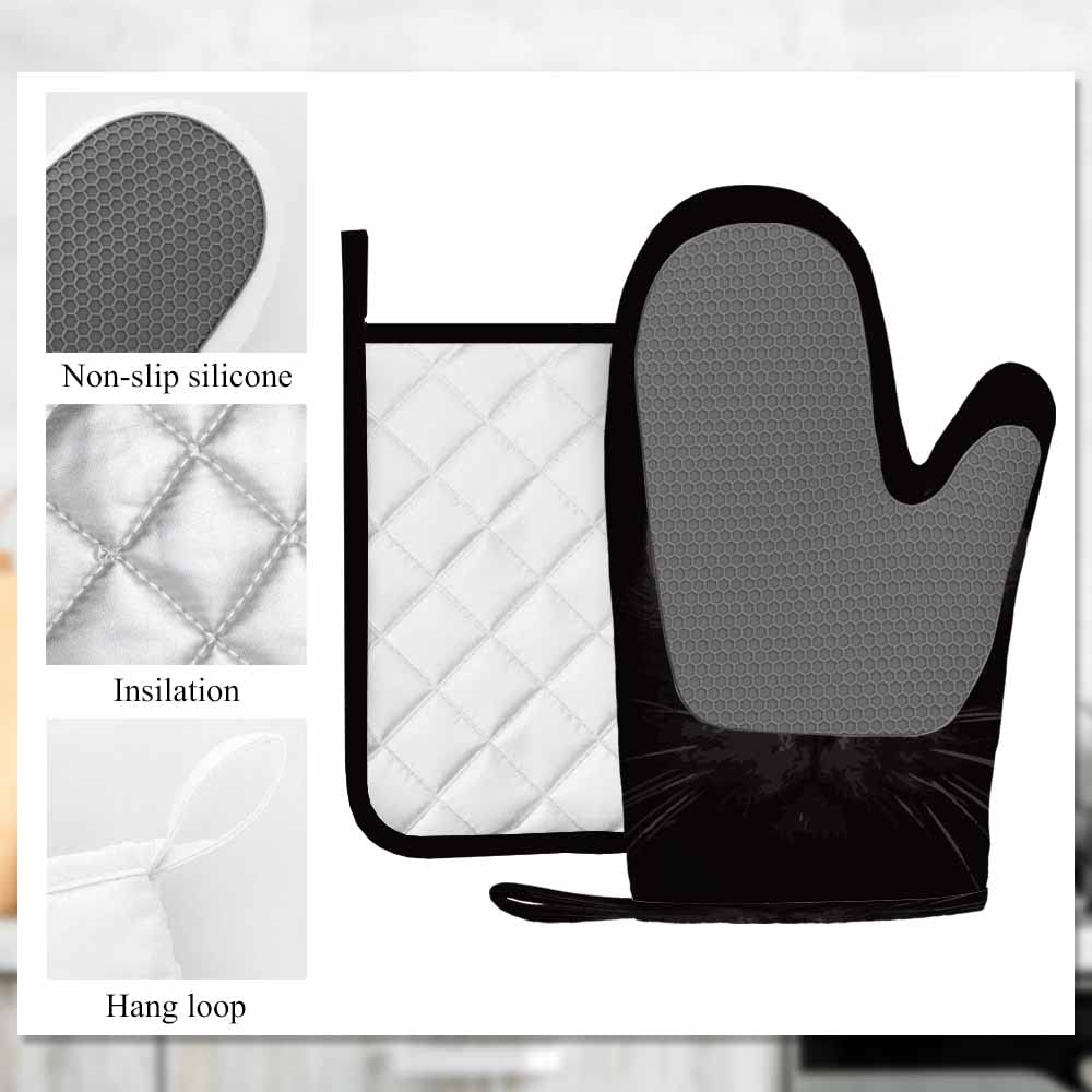 【WATERPROOF NO-FUSS FABRICS】The heat-insulating gloves and potholders are made of high-quality polyester, Sewn silicone layer on the palm surface, non-slip anti-scalding and heat insulation. The inner layers are made of waterproof fabric, which is easier to clean.