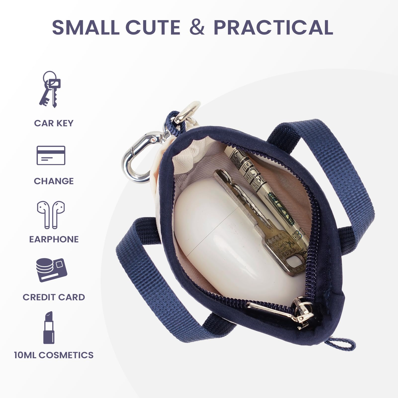 Compact & Portable (4.3"x3"x1.6"): Mini purse keychain holds essentials: 3-4 cards, 10ml cosmetics, coins. Perfect for daily carry.