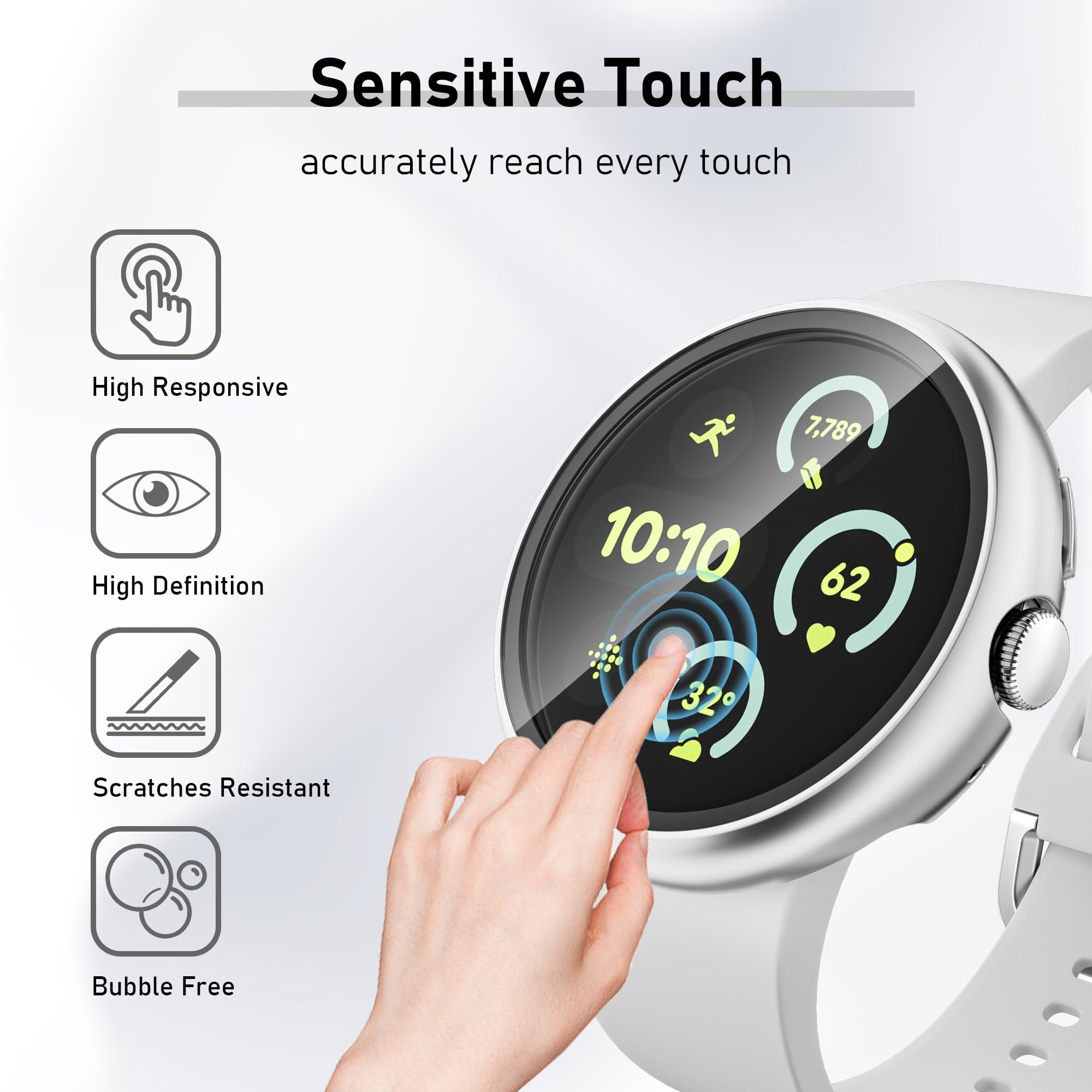 【Touch Sensitively & HD Clear】The pixel watch 3 2 1 case allows ultra-thin touch, maintains the original touching sensitivity for your watch. HD screen protector brings the ultimate experience to your watch. Precise cutouts for easy access to all controls, sensors and watch functions.