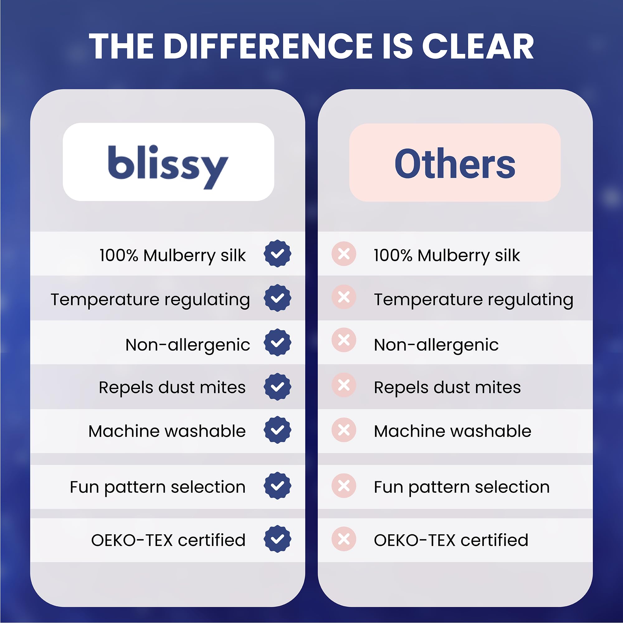 BETTER & COOLER SLEEP: The temperature regulating properties of the Blissy silk pillowcase allows your little ones to keep cool at all times during the night without the discomfort associated with fluctuating temperature and the constant tossing and turning for a restful night sleep.