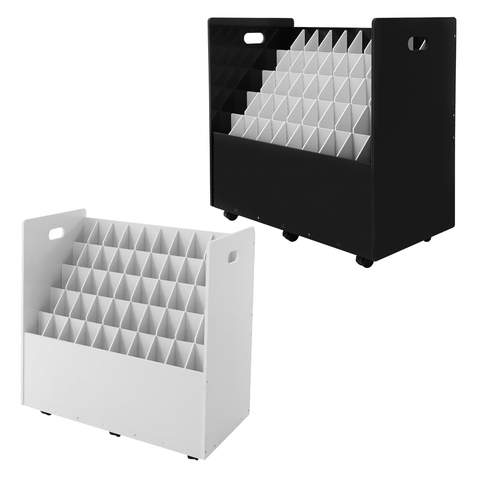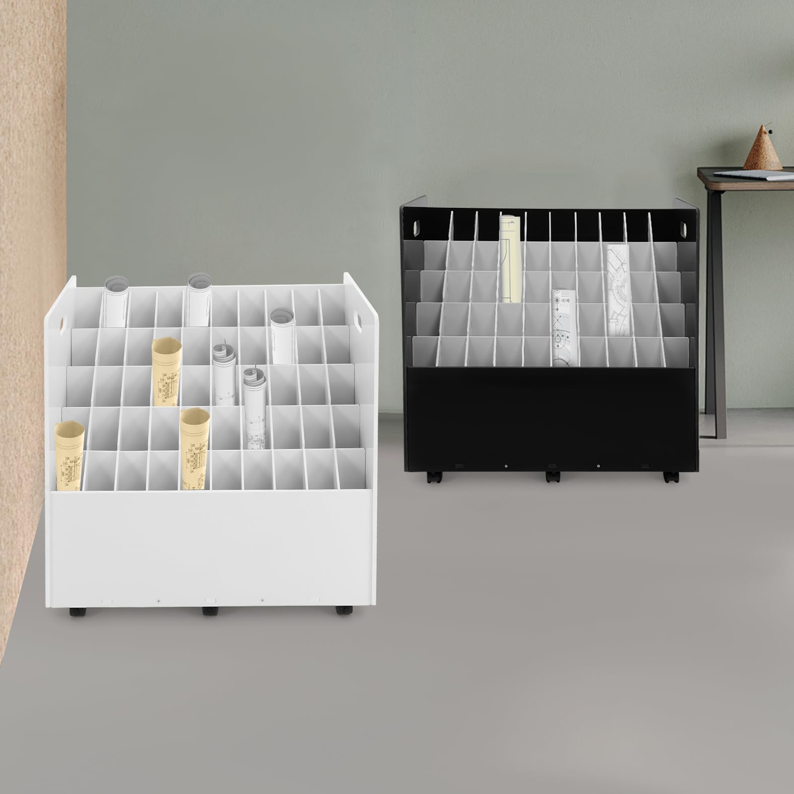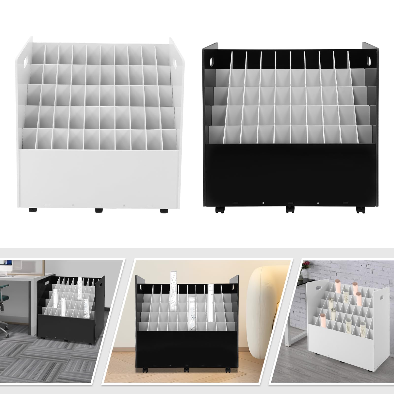 Description Our 50-slot roll file organizer is crafted from high-quality materials, it features 50 slots of different depths to neatly arrange your workpieces or photography equipment into different categories. Details Practical Handles: They facilitate easy moving. Two Raised Sides: The design of raised sides ensures that the work or equipment placed in the slots will not tilt or fall off. Application This product can be used in study rooms, studios, offices, print shops, factories, libraries, reading rooms, newspaper rooms, waiting rooms, meeting rooms, photography studios, and photography equipment stores to store or place drawings, newspapers, files, maps, wrapping papers, construction plans, prints, photography equipment, etc. Specification Material: PVC, Rubber Process: Carving, Co-extruding Color: Black Style: Modern Assembly Required: Yes Mount Type: Freestanding Wheels Type: 6 * Lockable Universal Wheels Number of Slots: 50 Number of Tiers: 5 Max.Total Load-bearing Capacity: 30kg/66.14lbs Each Tier Depth: 24.5cm/9.65in, 32.5cm/12.8in, 40cm/15.75in, 47.5cm/18.7in, 55cm/21.65in Applicable Paper Roll Max. Diameter: 6.99cm/2.75in Product Size: 76.2*40*72.4cm/30*15.75*28.5in Package Size: 85*42*10cm/33.46*16.54*3.94in Gross Weight: 15kg/33.07lbs Net Weight: 14kg/30.86lbs Package Included 1* Roll File Organizer 6 * Universal Wheels 1* Polishing Pad 1* Polishing Instruction Diagram 1* Installation Diagram 1 Pair * Gloves 1*Screwdriver Other Accessories for Assembly Notes 1. Please carefully read the installation diagram and assemble this product according to it. Please wear gloves during assembly.