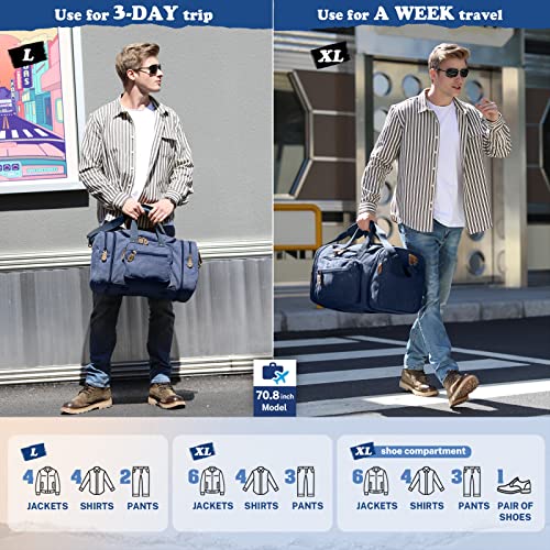 Multipurpose: Suitable for both men and women, the Canvas Travel Duffel Bag can be used as a weekender bag, overnight bag, short-term travel bag, toiletry kit, camping bag, business bag, gym tote, carry-on luggage, or simply as an emergency bag