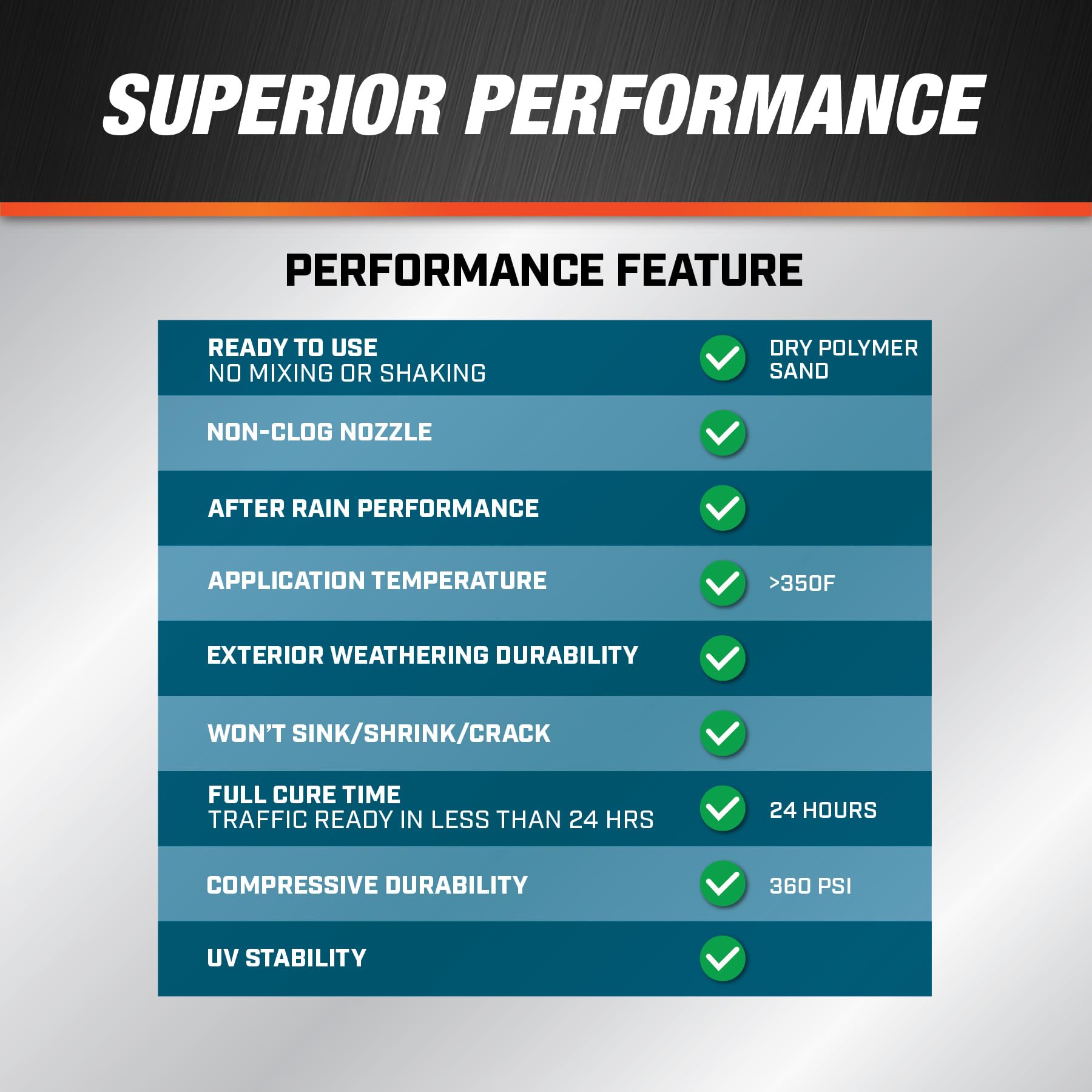 Ready for light foot traffc in 4 hours, return to full service (including vehicles) within 48 hours