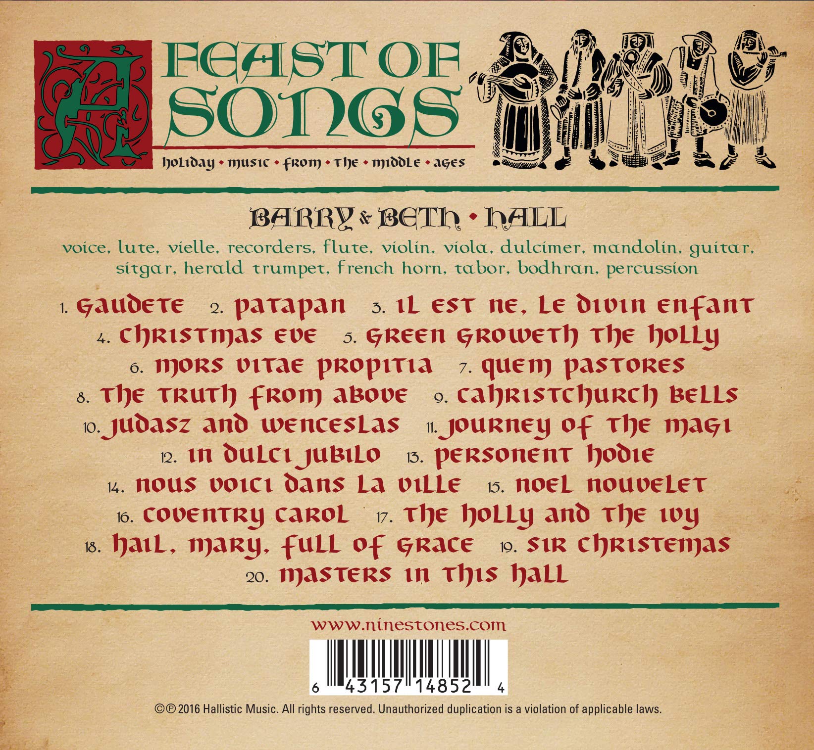 Review "Barry and Beth Hall are folk musicians who play medieval music with exuberance." --Tom Manoff, Classical Music Critic for National Public Radio's "All Things Considered" This CD was rated 4.5 stars (out of 5) in the Holiday 2007 issue of Renaissance Magazine and was featured as a top pick on NPR's "All Things Considered" in December 2010 --Renaissance Magazine and NPR Product Description A lively collection of familiar and unusual traditional songs and dances from the middle ages that celebrate the winter season and its associated festivals and holidays, with a focus on Yule and Christmas. Songs from the British Isles, Ireland, Germany, France, Poland and Sweden blend medieval and renaissance tonalities with a festive folk energy that awakens the spirits of past ages. Beth and Barry's robust voices combine with a wide array of rustic and refined musical instruments reaching back to medieval times. About the Artist Barry and Beth Hall sing and play a variety of acoustic instruments including lute, dulcimer, viola, violin, mandolin, guitar, sitgar, flute, recorders, French horn, herald trumpet, doumbek, tar, bodhrán, tabor, tambourine, cymbals, Moroccan and African drums, and many other percussion instruments.