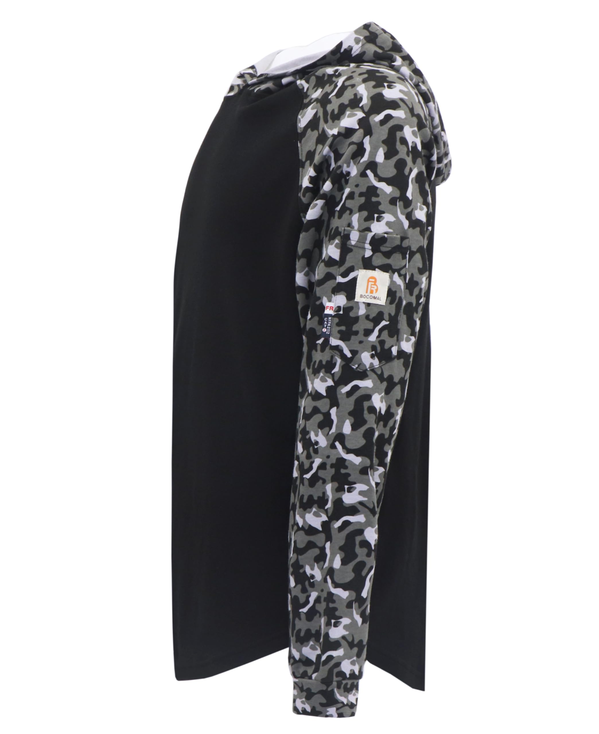 FASION AND COMFIT:This FR hooded T shirt camo two-tone style provides a perfect and comfortable fit,Soft and fashionable.we have prewashed and preshrunk the shirt to prevent any shrinking or distortion after washing. It is also wrinkle-free, making it easy to maintain