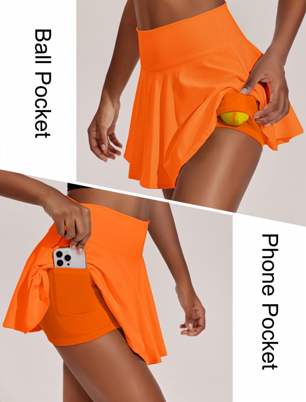 Stylish Pleat Design: The 14" workout skirt enhances your sporty-chic with cute flowy pleats, while making you move freely. Please consider your height and preferred length when ordering.