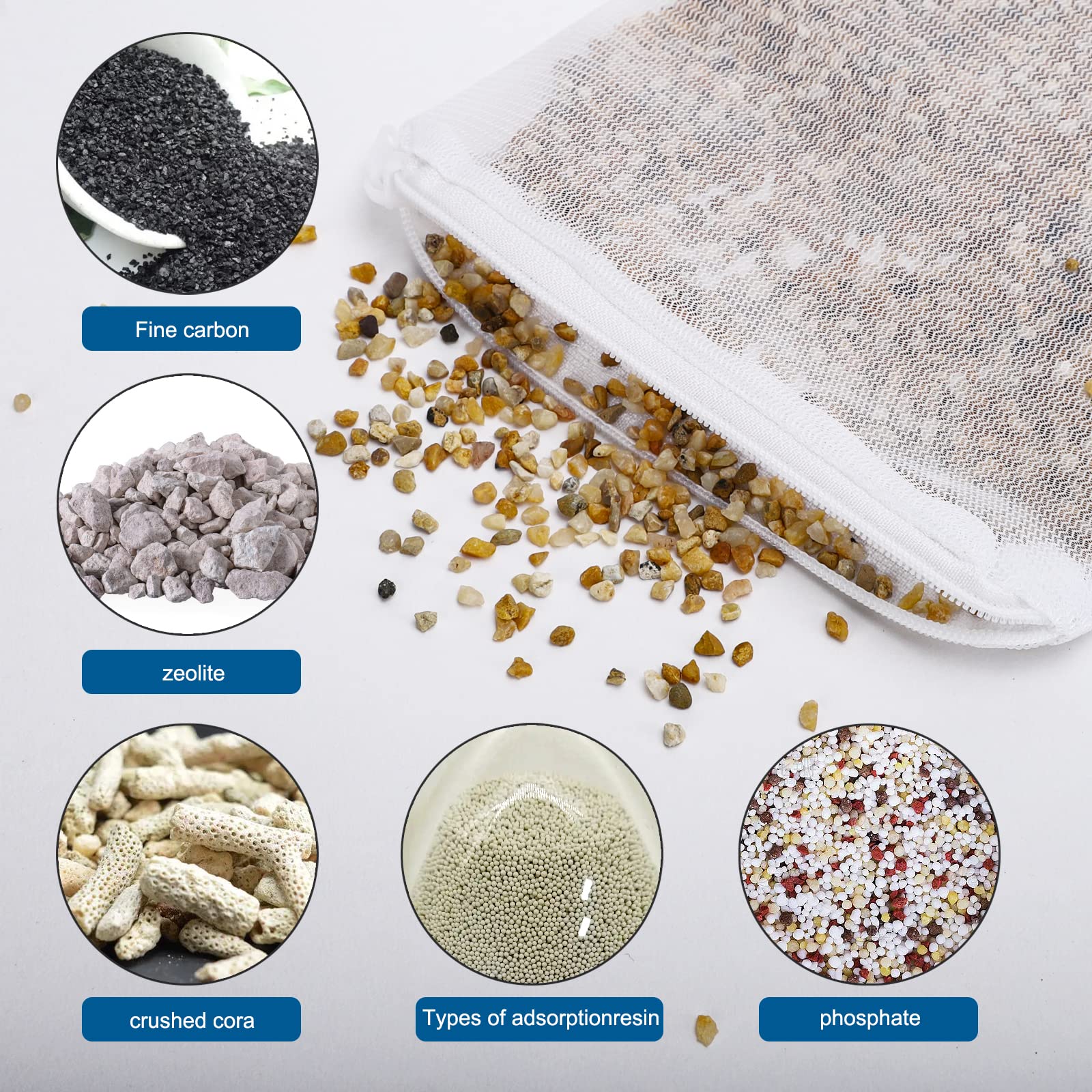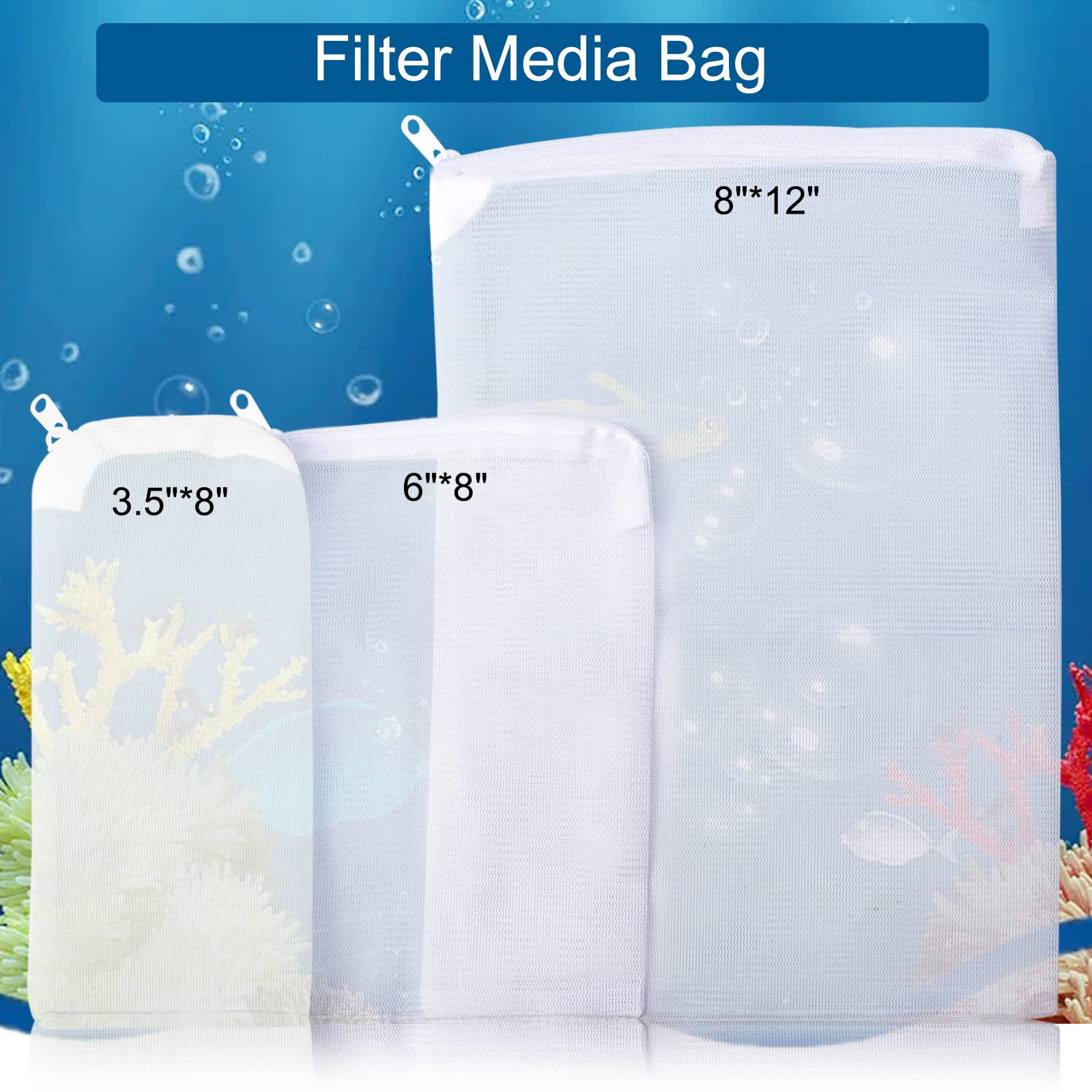Easy to Fill and Durable: These well-made filter media bags with sturdy top zipper design make media changes easy, easy to empty out as well as restuff. Made of high quality nylon so our mesh filter bags are durable for years use and completely safe for both fresh and saltwater aquariums. Note: do not overstuff the media in the filter bag to let water flows through the media easily!