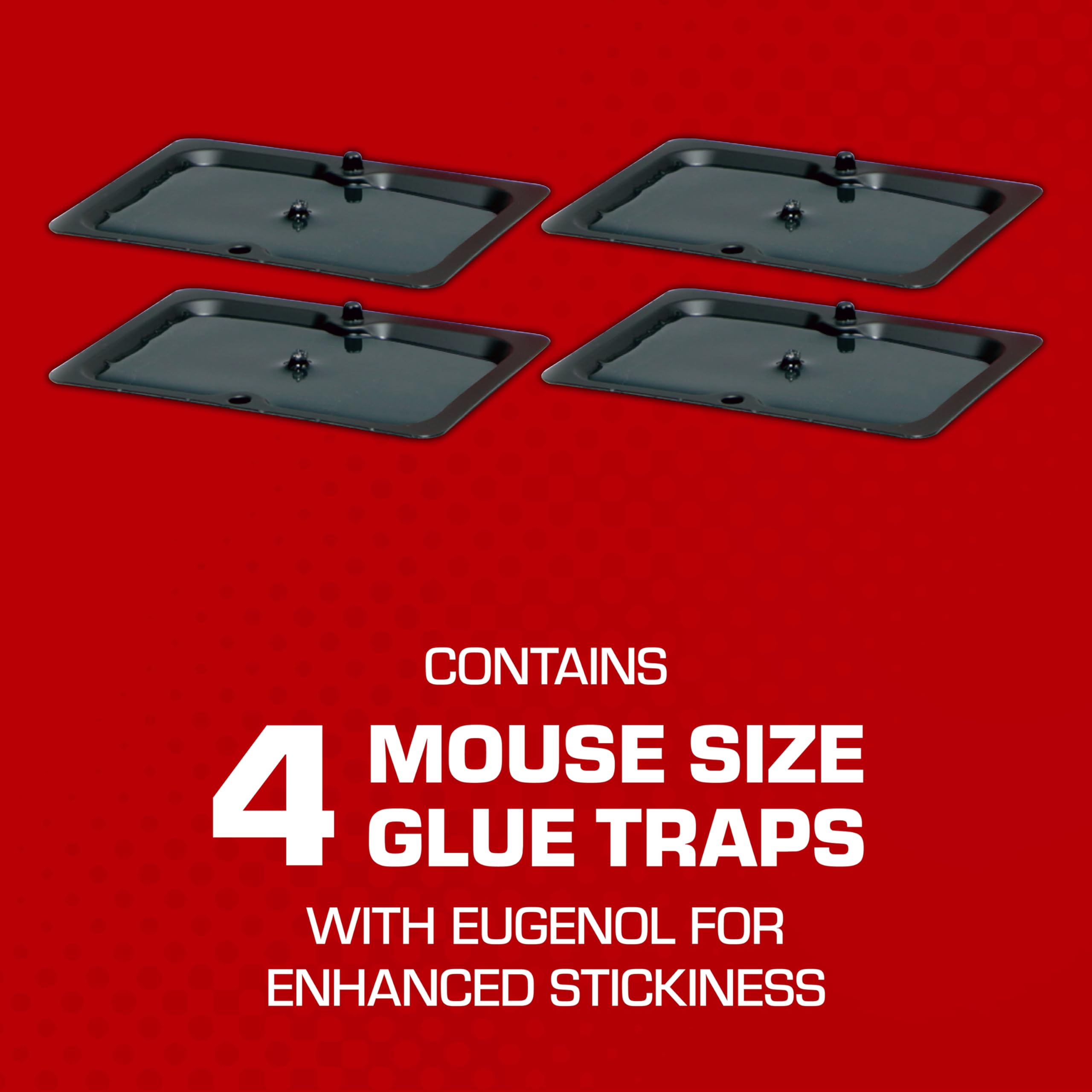 Tomcat® is designed to kill. Tomcat® Glue Traps with Eugenol for Enhanced Stickiness are the , non-toxic way to stop a mouse right in its tracks. Our professional-strength glue formulation is pre-scented and has the ideal combination of immediate grip and stretchable hold to effectively capture mice and other household , including cockroaches, ants, spiders, and scorpions. Tomcat® Glue Traps come ready to use right out of the box, so you can get to mouse-hunting immediately. Rodents have a natural tendency to run along walls as they move from hiding to feeding, so we recommend placing your traps up against the walls of rooms or cupboards where activity is suspected, such as kitchens, basements, or garages. If a mouse has not been caught in 2-3 days, place the trap in an alternate location. Once the mouse has been captured, dispose of the trap and rodent in the trash. Each package of Tomcat® Glue Traps contains four disposable mouse-sized traps.