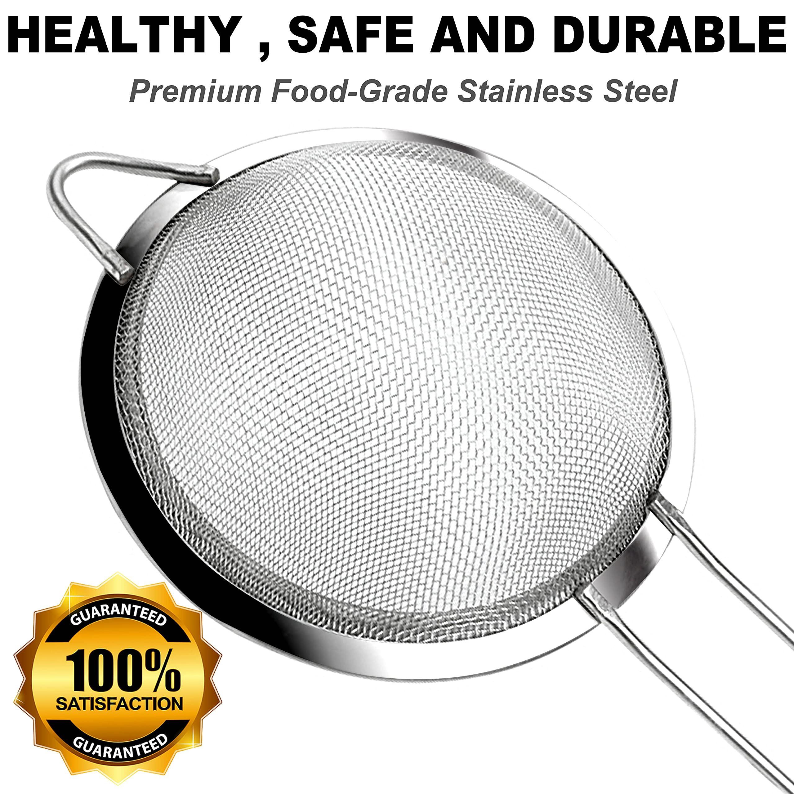 【SAVE TIME & NO WASTED FOOD】Anaeat strainers are made from extra fine mesh. This especially help to fast sifting through dry ingredients such as those used for baking, also for refining the texture of sauces and separating fine particles and seeds from the same. Efficiently saved the time and no more waste of food.