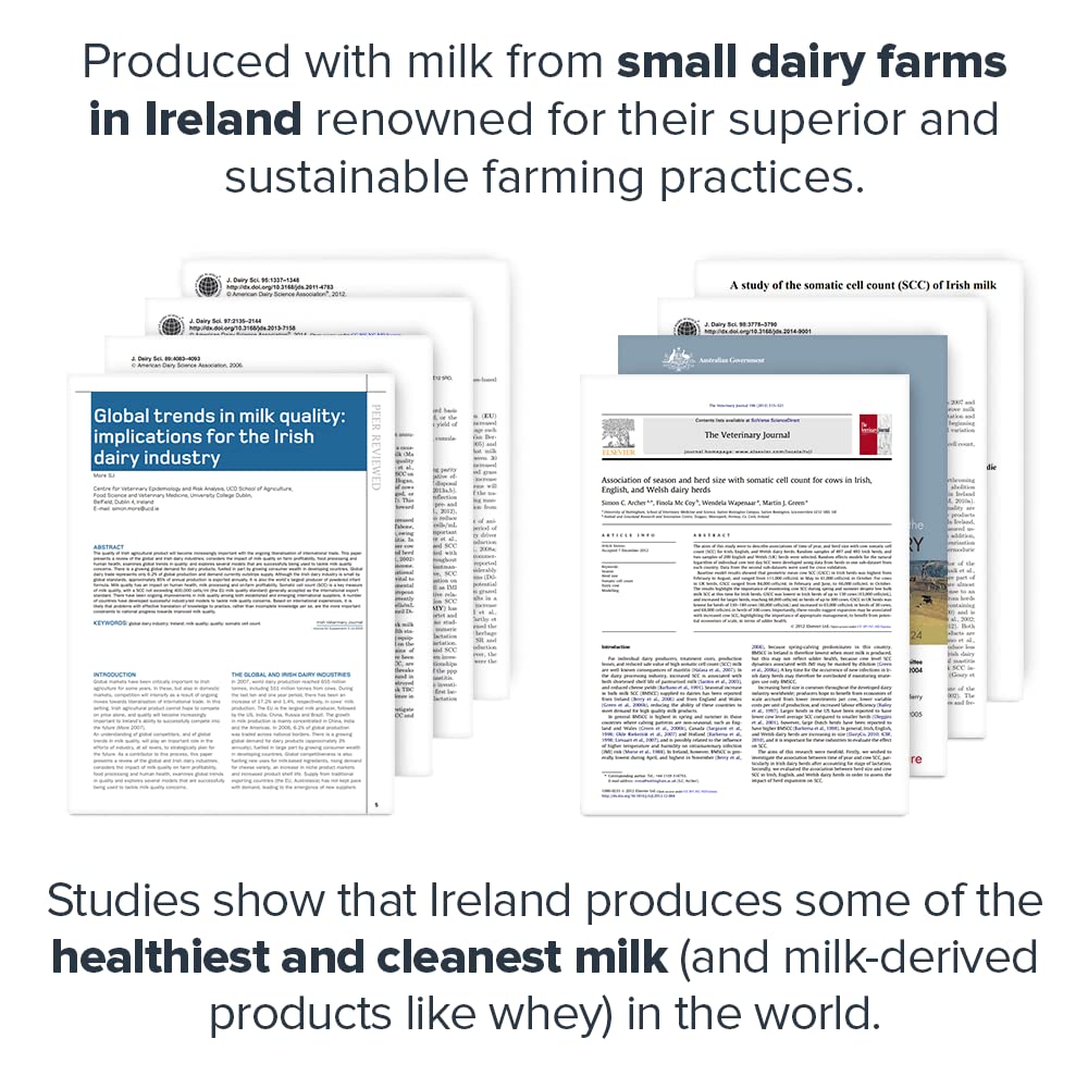 22 grams of grass-fed protein per serving with 12 grams of essential amino acids, 5.5 grams of BCAAs, and no lactose or added sugars.
