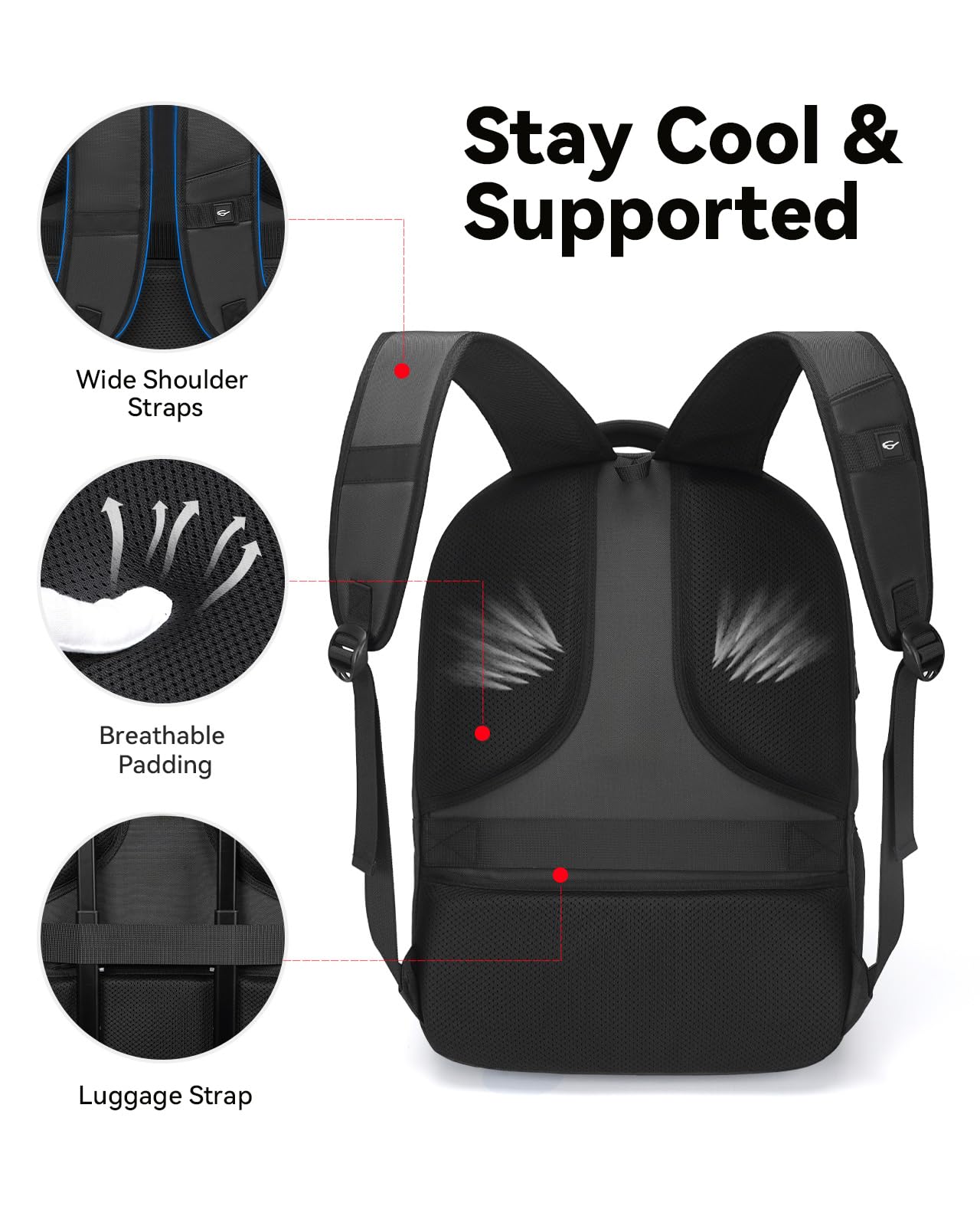 【Comfort-First Ergonomic Design】Built for all-day wear, this work backpack for men features breathable mesh shoulder straps, thick padding, and a ventilated back panel to reduce strain. A luggage strap allows you to attach it to your suitcase, making this back pack for travel carry on perfect for airports, commuting, or business trips.