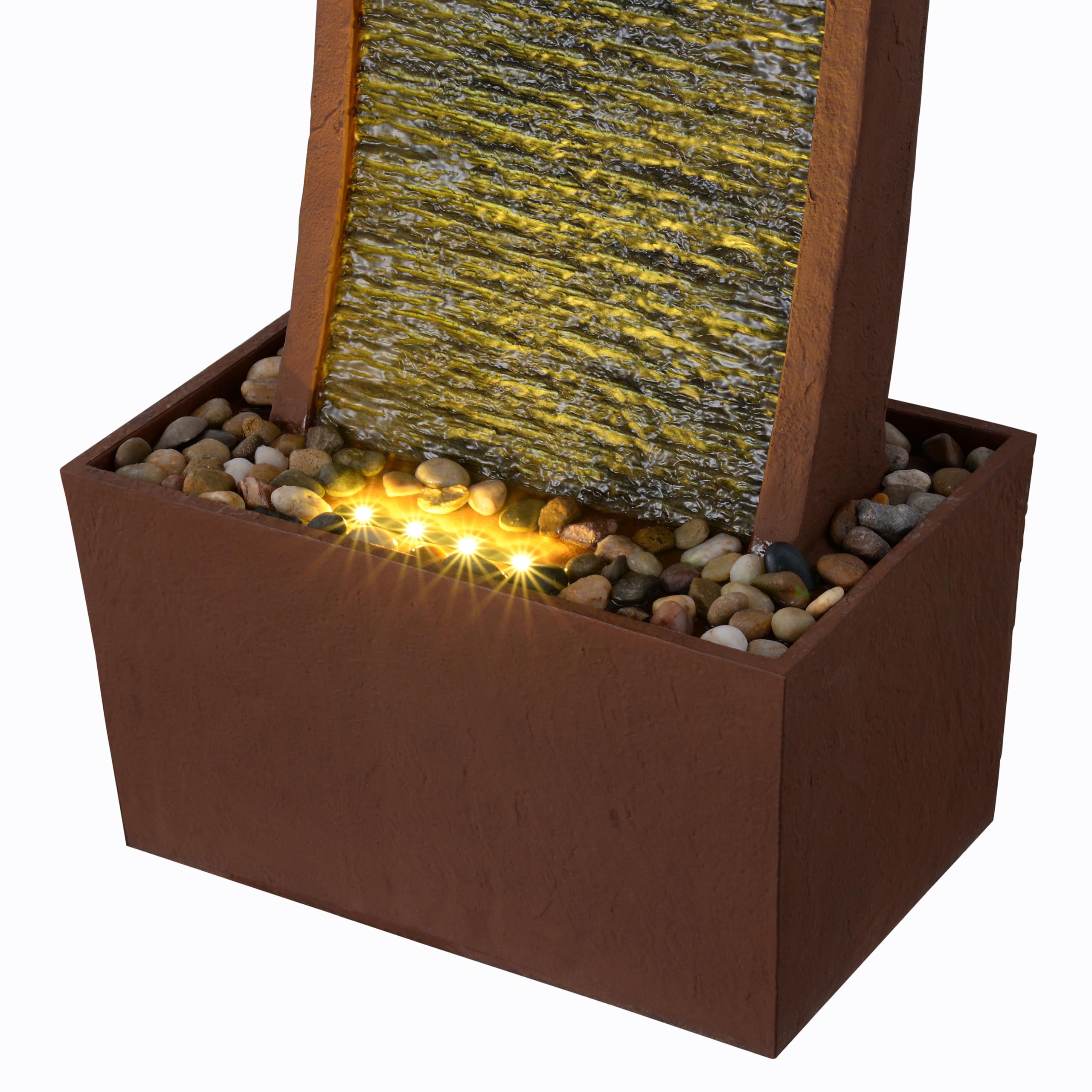 Transform your living space into a serene oasis with the Teamson Home 38.5" Modern Curved Waterfall Fountain. Designed for both indoor and outdoor use, this elegant fountain features a faux slate finish that complements any décor style. The gentle cascade of water creates a tranquil atmosphere, while the integrated LED lights add a mesmerizing glow, making it a captivating focal point day or night. Constructed from durable polyresin and fiberglass, this fountain is built to endure the elements, ensuring long-lasting beauty and functionality. Its compact design and easy assembly make it an ideal addition to gardens, patios, living rooms, or entryways. Elevate your environment with the soothing sounds and visual charm of this exquisite water feature.