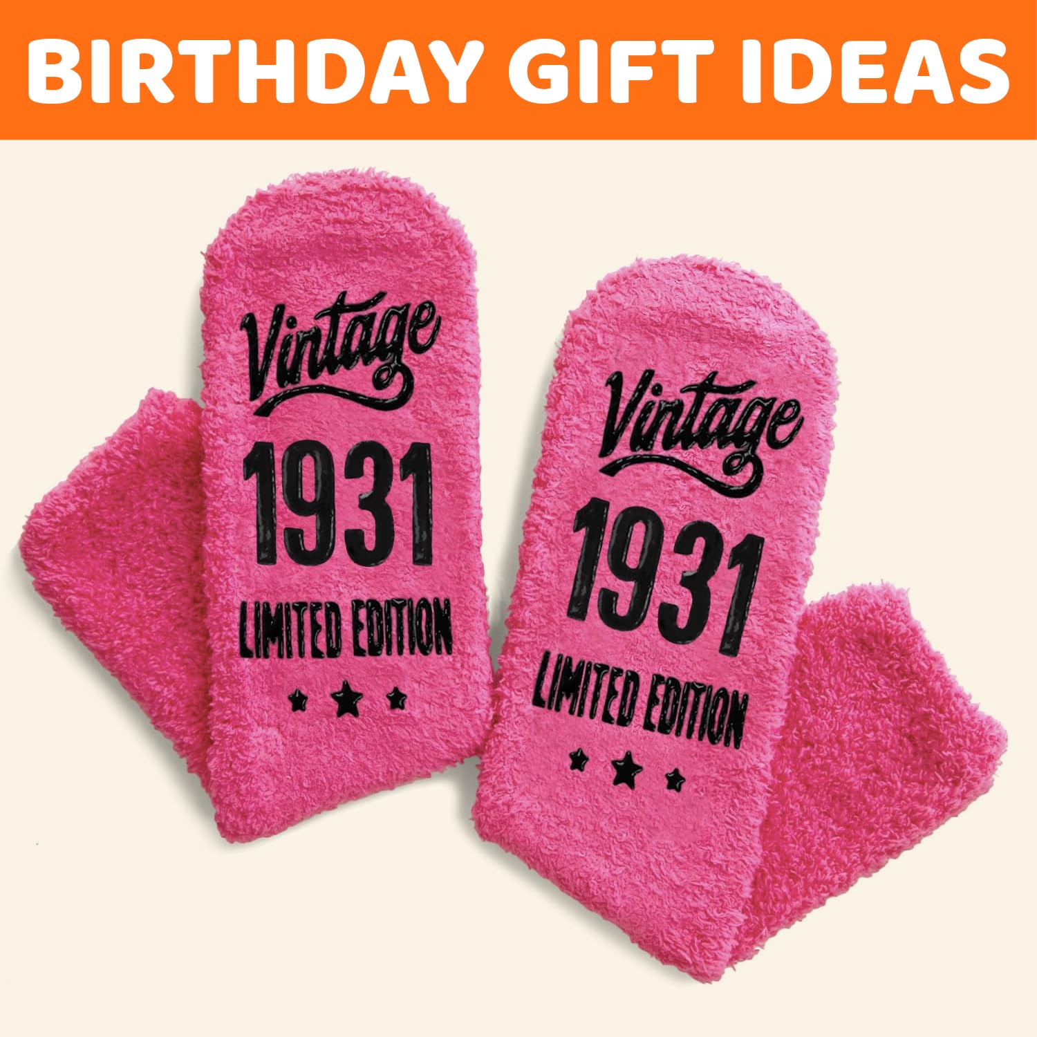1931 BIRTHDAY GIFTS: Give her this 95th birthday gift to remind her of how special she is. She will smile when she sees the words “Vintage 1931 LIMITED EDITION.” Practical and fun, these socks are a great gift for anyone born in 1931.